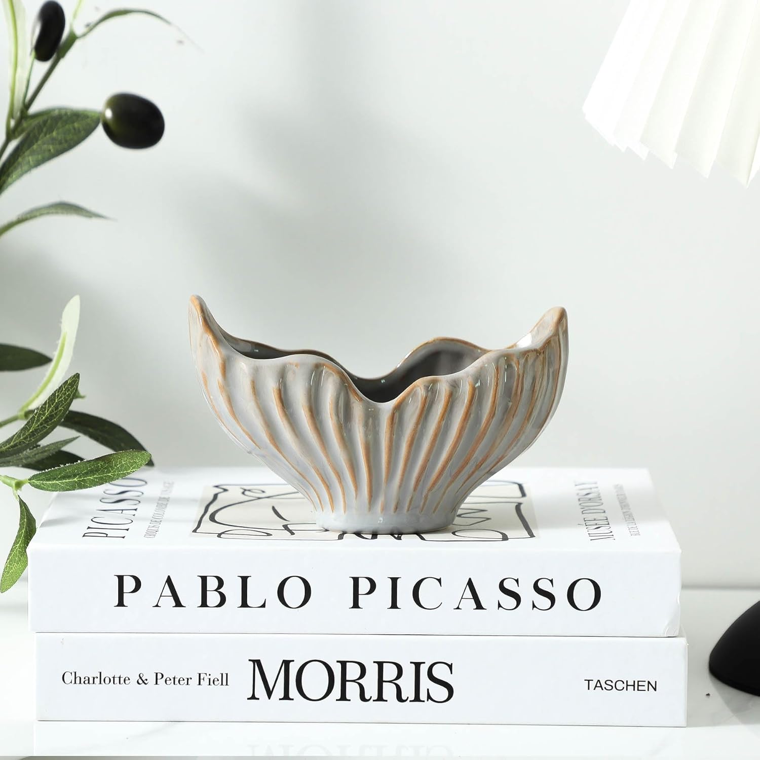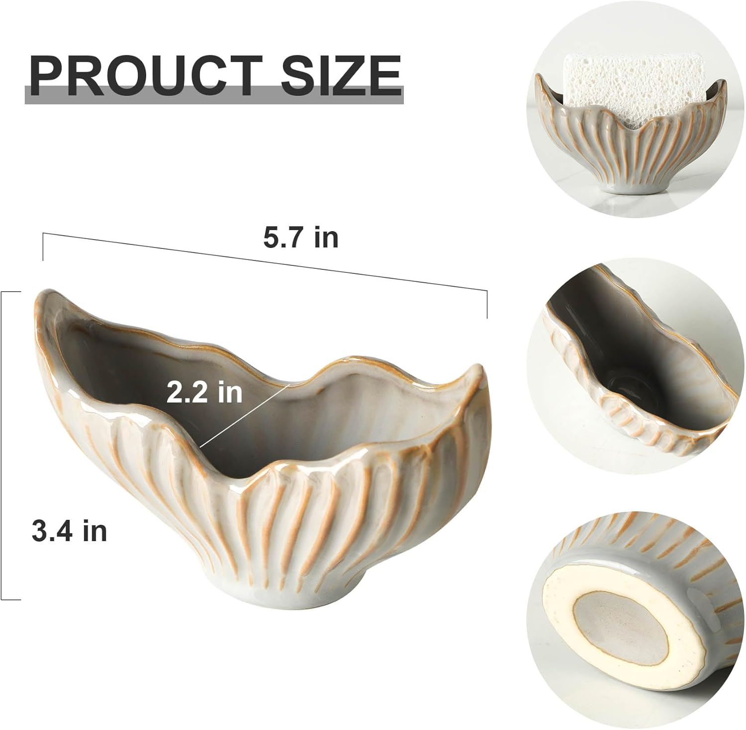 Sponge Holder for Kitchen Sink, Ceramic Sponge Holder with Fishtail Design, Sink Sponge Holder Caddy Organizer for Countertop, Farmhouse Kitchen Decor, Compact Kitchen Sponge Holder(Grey)