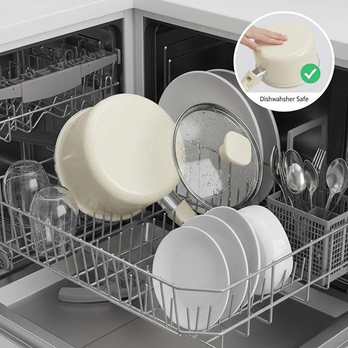 • High-quality Material: Nonstick saucepan with a high-performance non stick ceramic coating is safe and tested, free of PTFE, PFOA, PFAS, lead, cadmium and other toxic materials, making it safe for food contact use.