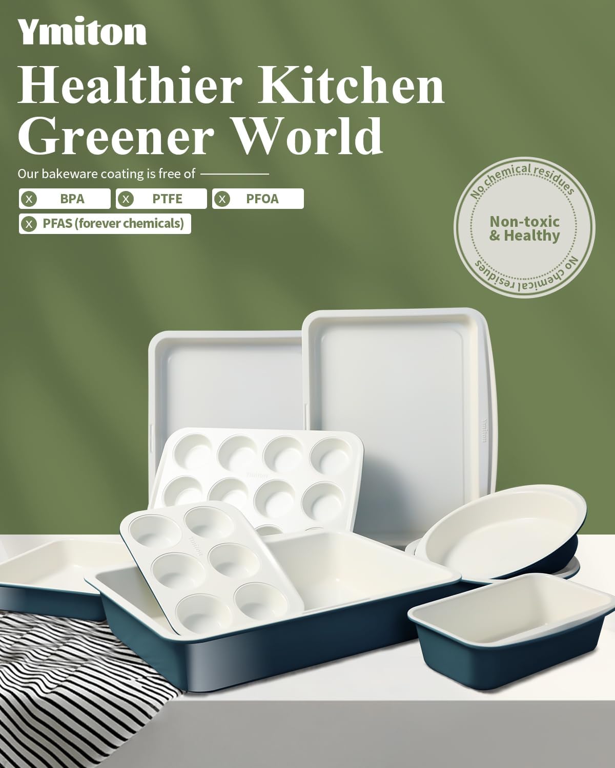 • 33 PCS COMPLETE CERAMIC BAKEWARE SETS: Includes essential bakeware for all baking needs: cookie sheets, round cake pans, loaf pan, muffin pans (12 & 6 cup), and roasting pan- perfect for cakes, cookies, muffins, roasting, and sheet pan dinners, 24 cupcake liners for baking, ideal for multi-tasking in the kitchen