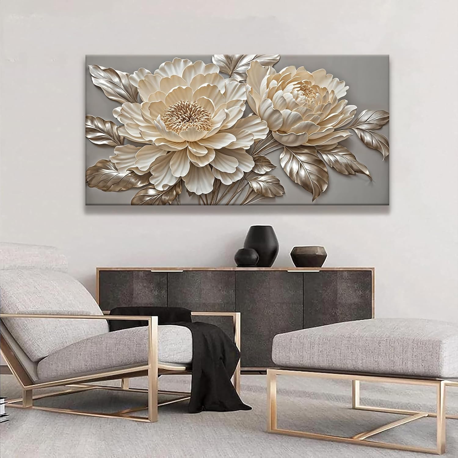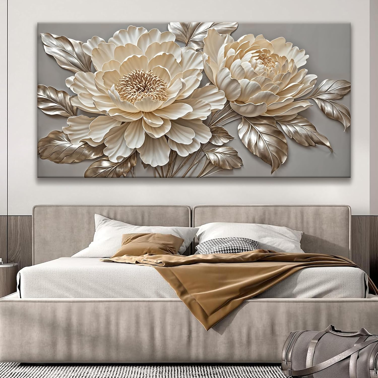 Tsomzxng Large White Wall Art For Living Room Prints Artwork Canvas Art Wall Decor White Flower Wall Art Modern Painting Elegance Wall Decor For Hotel Office Home Decoration 29 X 58 Inch