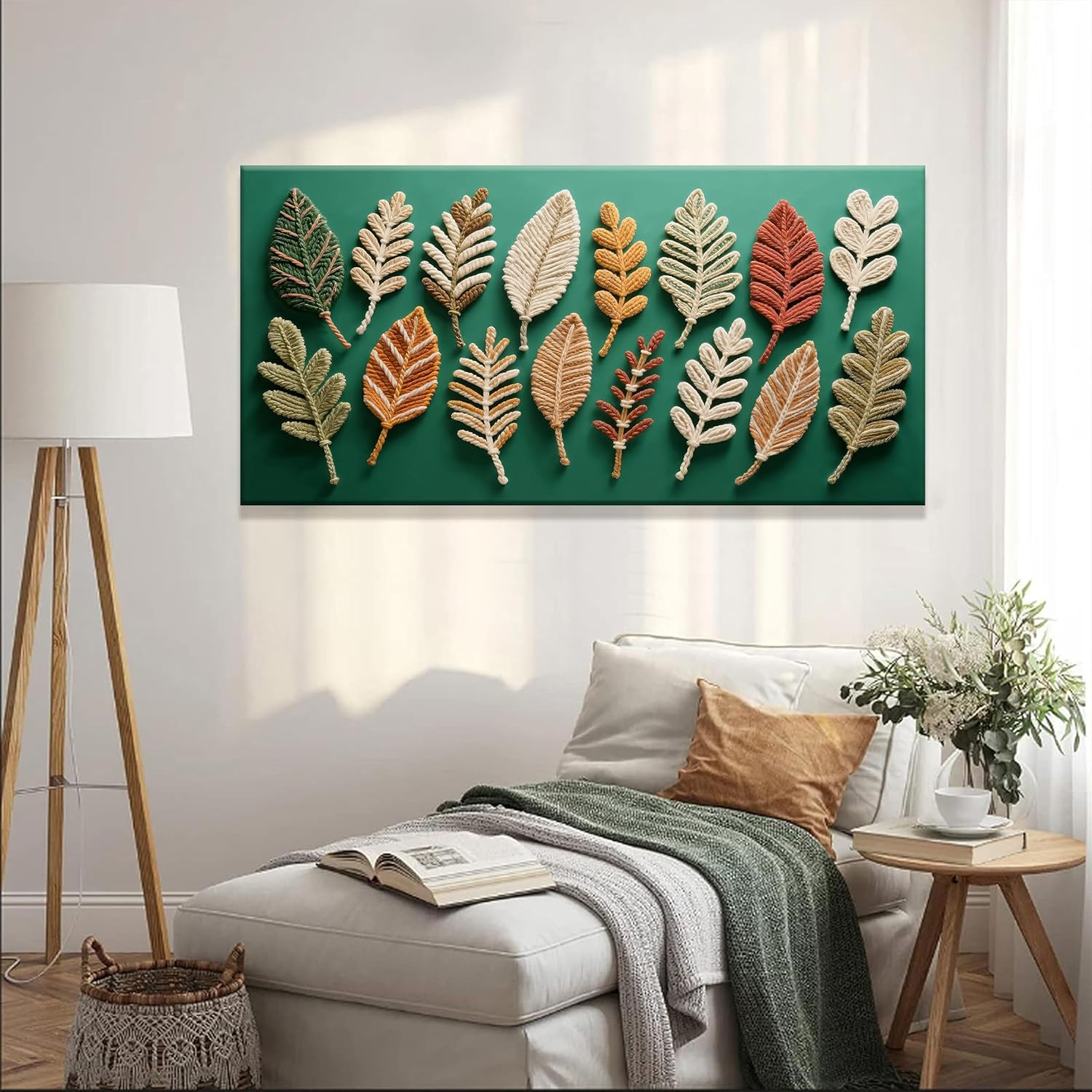 Tsomzxng Boho Wall Art For Living Room Modern Bohemian Feather Wall Decor Prints Artwork Canvas Art Wall Decor Painting Green Wall Art Picture For Bedroom Apartment Home Artwork 24 X 48 Inch