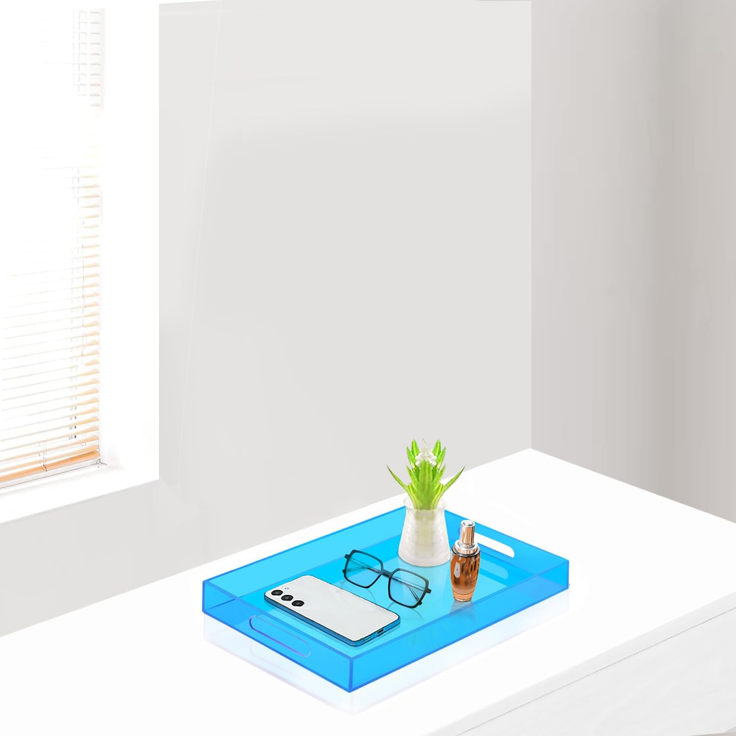 SetGame Acrylic Serving Tray with Handles, Bathroom Desktop Decorative Storage Arylic Trays, Simple Vanity Tray Food Tea Fruit Dinner Snack Tray for Bar Kitchen Party