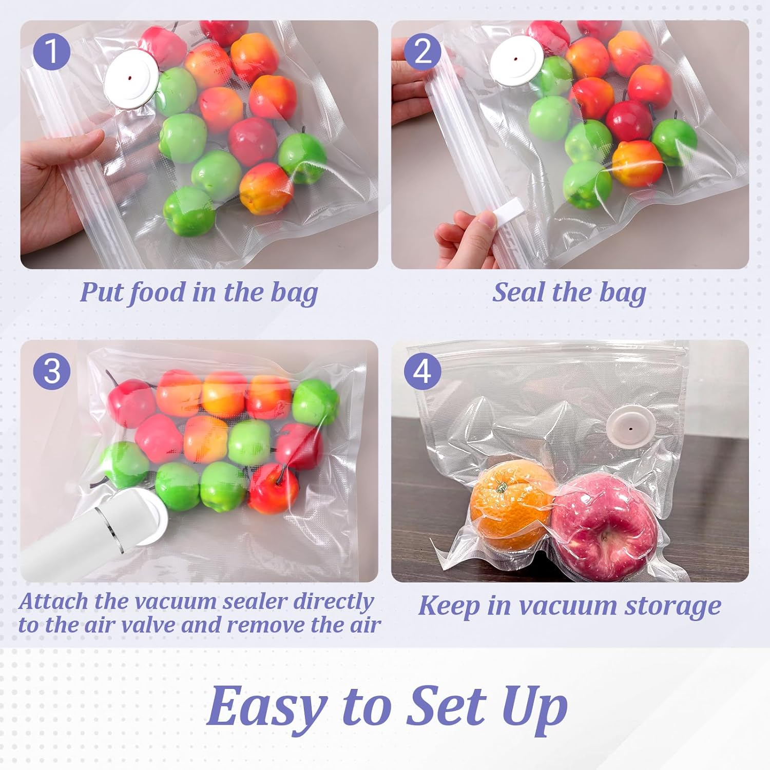 • [Easy to Use] These reusable storage bags for food feature a valve for easy sealing. They require a vacuum sealer and can be used repeatedly.