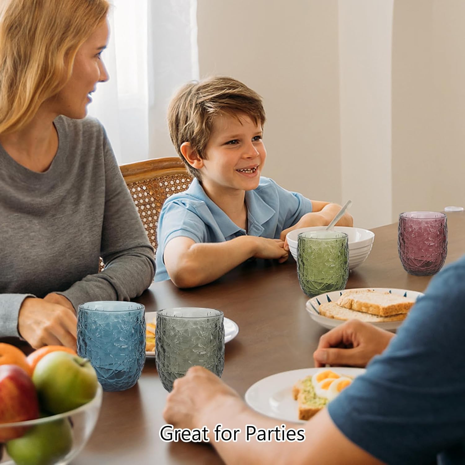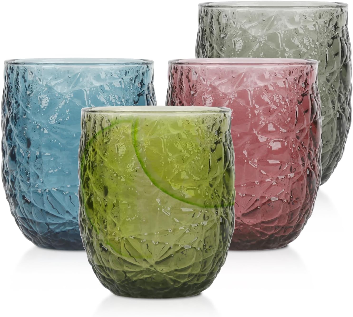 Colored Glasses Drinking Set of 4, 12oz Vintage Drinking Glasses, Drinking Glasses for Cocktail, Beer, Wine, Whiskey, Water & Juice Drinkware (Lce Cracks 4PCS)