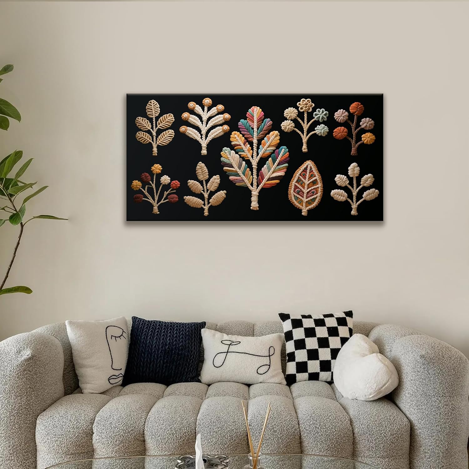 Tsomzxng Boho Black Wall Art Modern Bohemian Canvas Wall Art Decor Multicolor Painting Prints Boho Wall Art For Apartment Bedroom Nursery Backdrop 20" X 40" Ready To Hanging