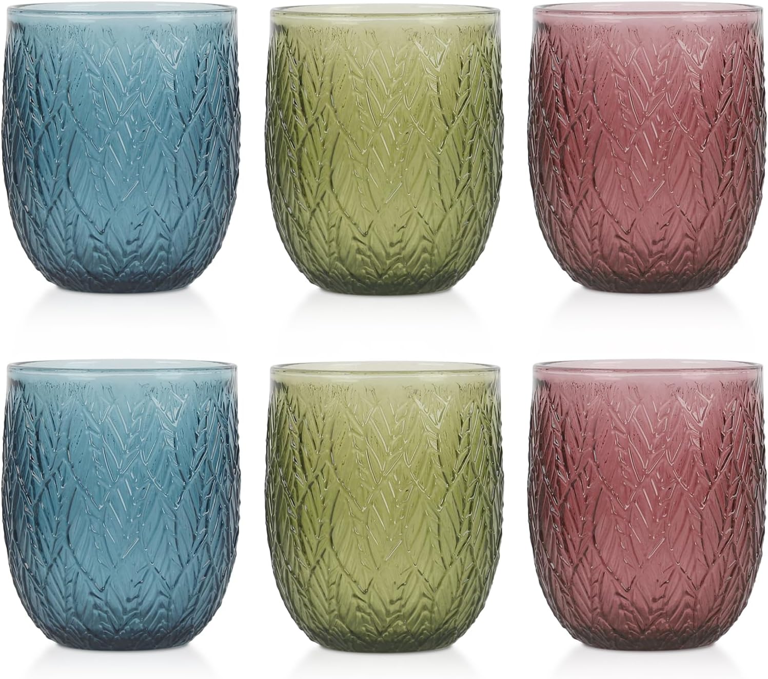 Colored Glasses Drinking Set of 6, 12oz Vintage Drinking Glasses, Drinking Glasses for Cocktail, Beer, Wine, Whiskey, Water & Juice Drinkware (Willow Leaf 6PCS)