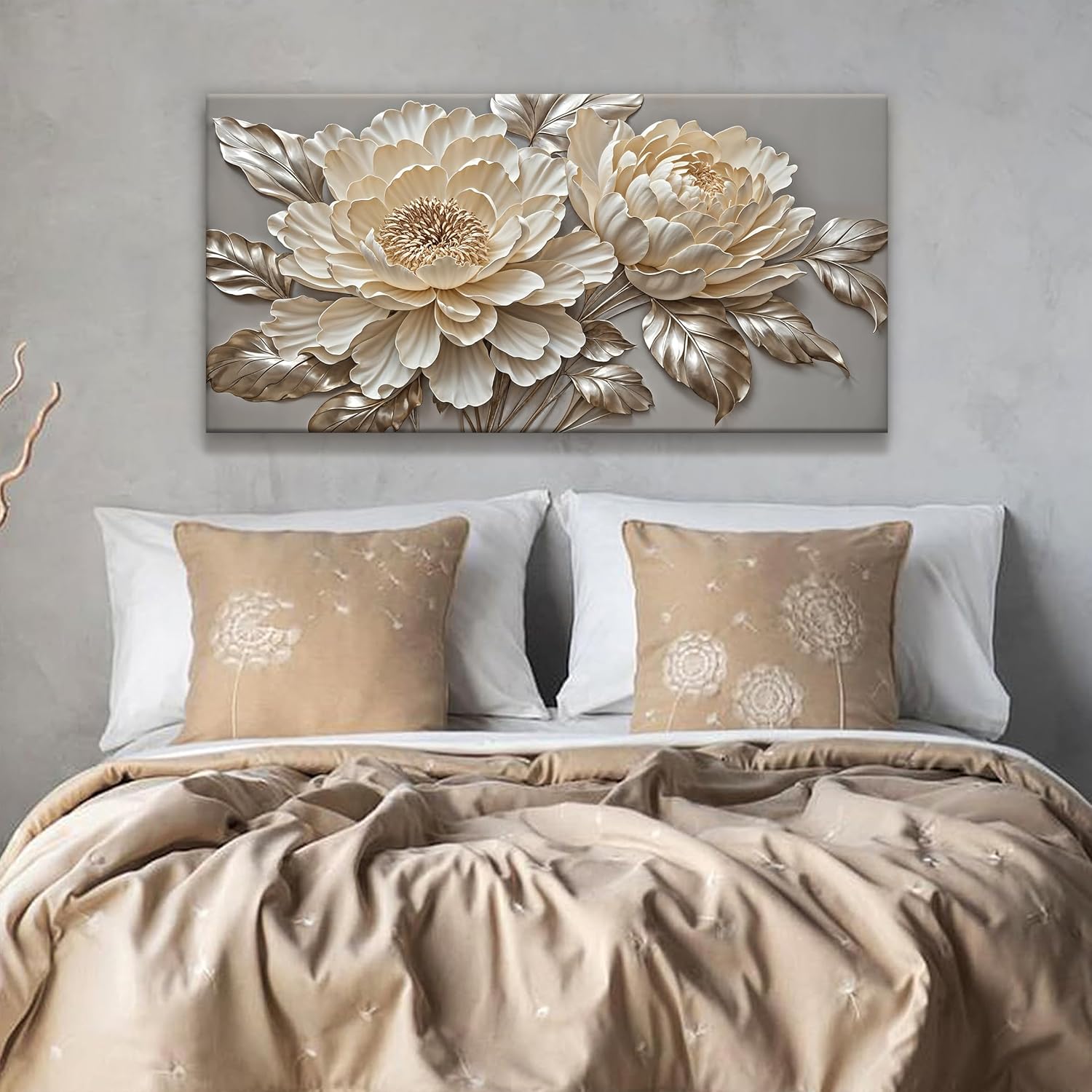 Tsomzxng Modern Wall Art White Wall Art Minimalist Elegance Canvas Art Wall Decor Painting Artwork White Flower Wall Decor Prints Pictures For Bedroom Office Home Decoration 20" X 40"