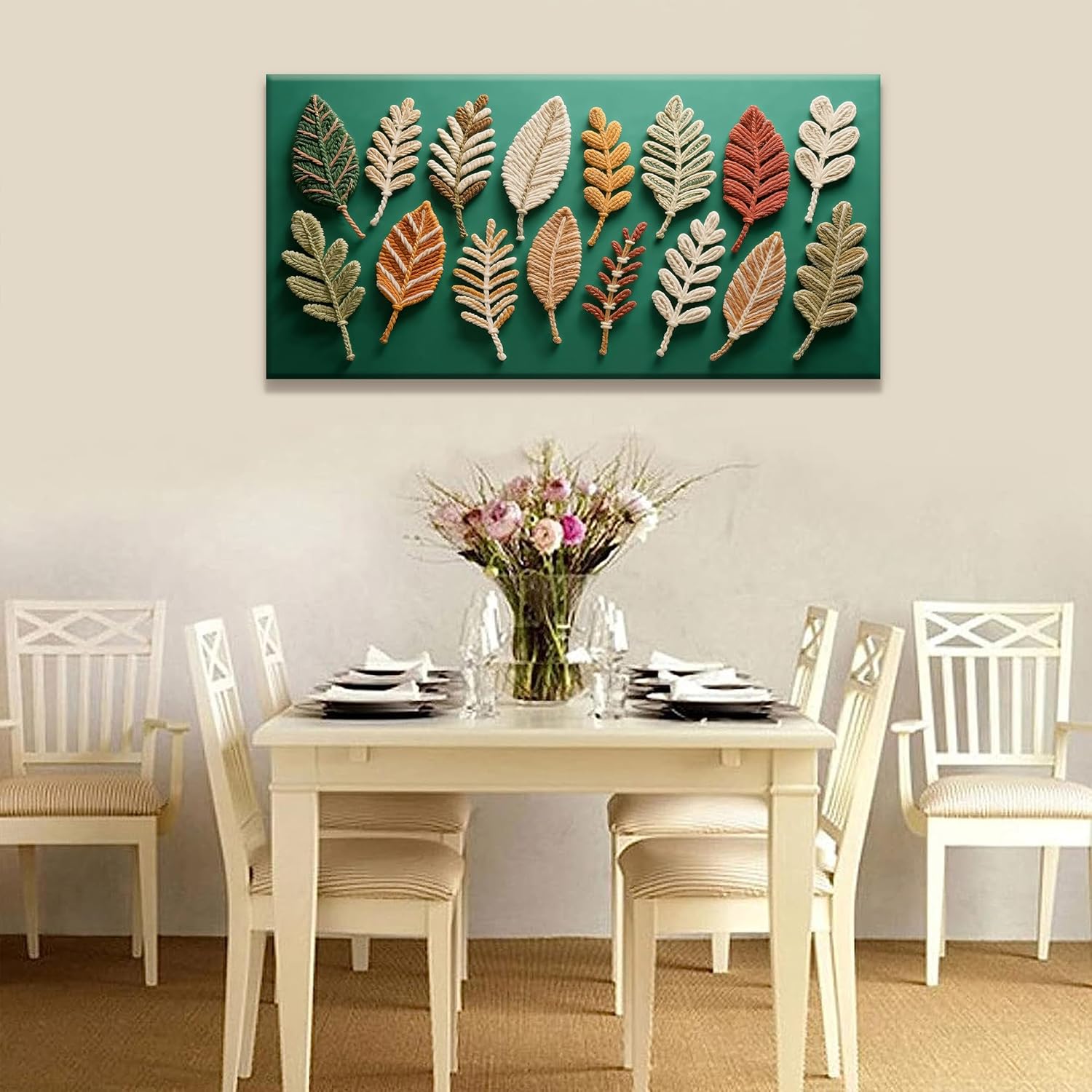 Tsomzxng Canvas Art Wall Decor Modern Bohemian Feather Abstract Art Decor Paintings Boho Wall Art Prints Green Wall Art Pictures For Bedroom Kitchen Office Home Decoration 20" × 40"