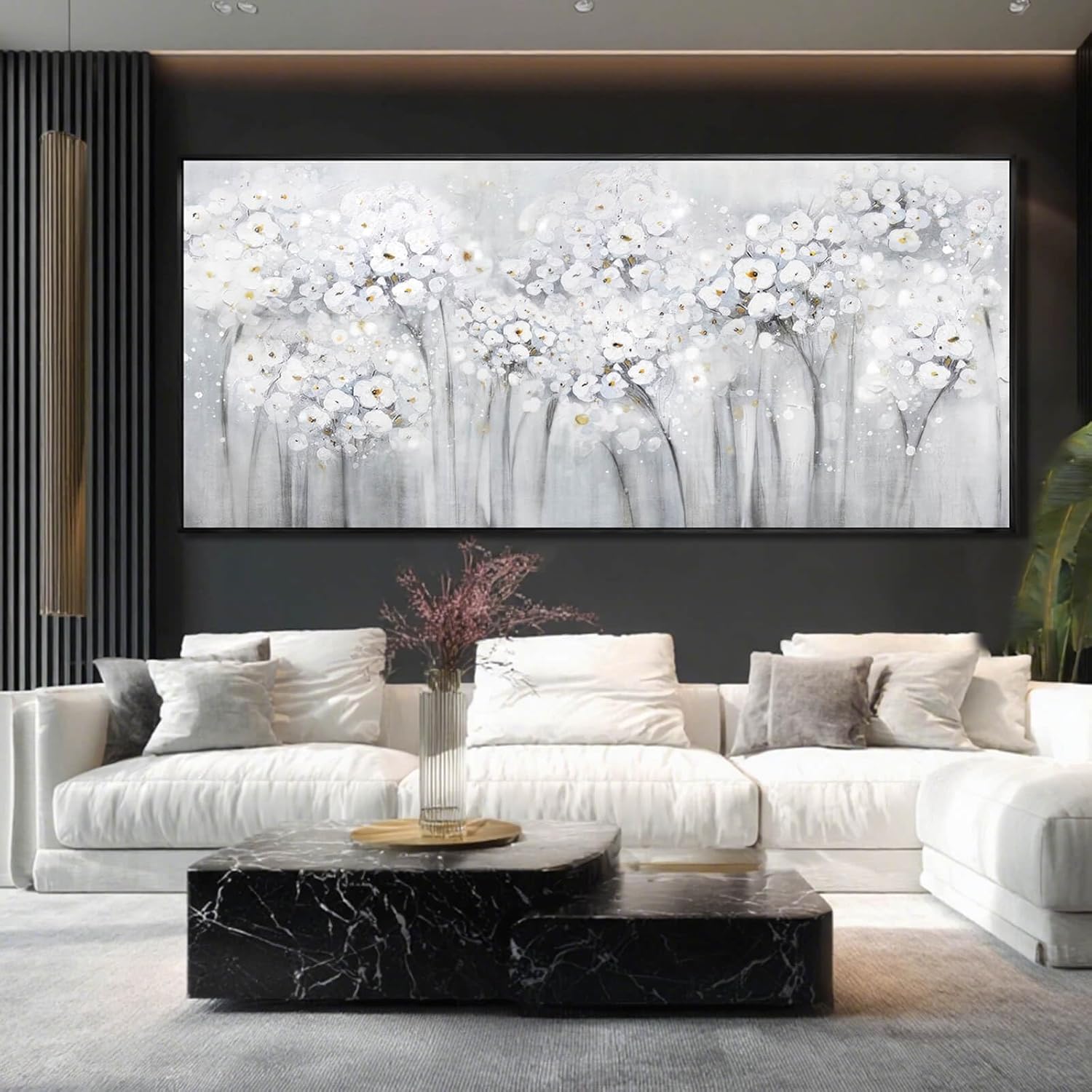 Flower Wood Wall Decor White Wall Art Textured Canvas Painting 32"x70" Decorative Pictures for Bedroom Kitchen Large Artwork