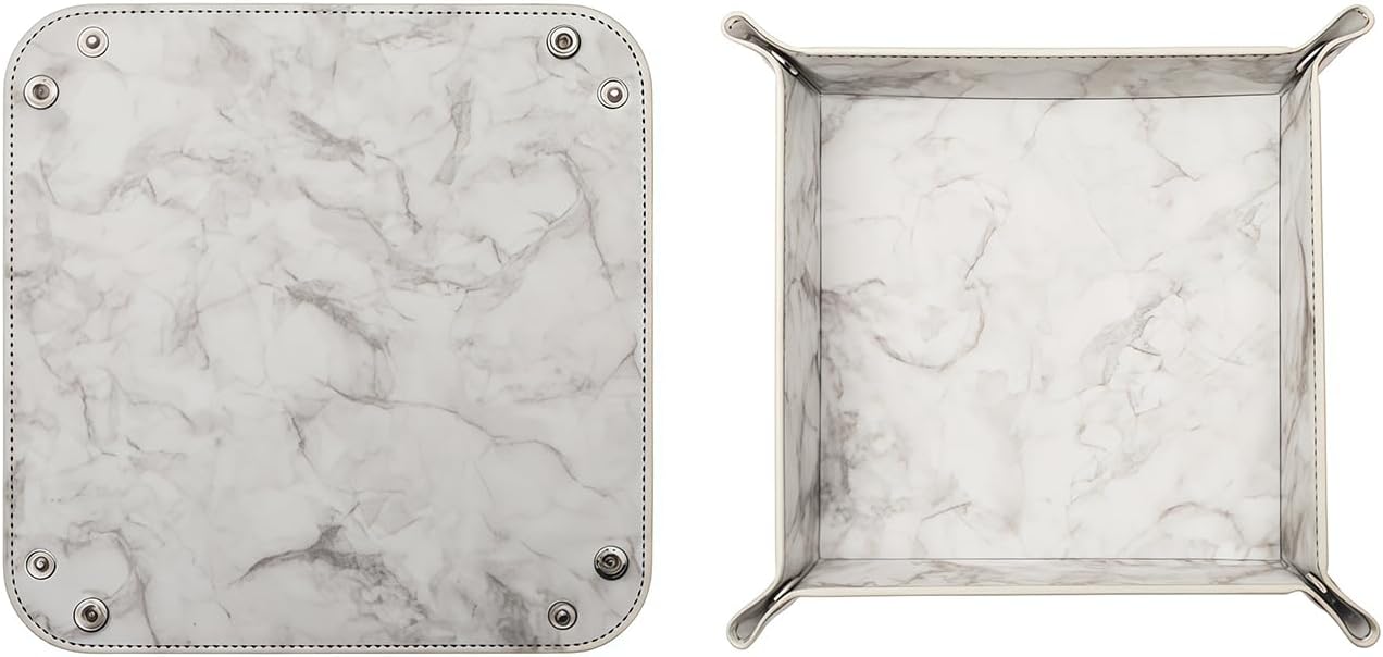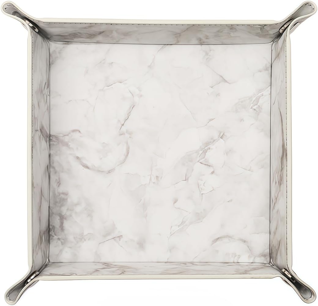 siduater Valet Tray Desktop Storage Organizer – Vegan Leather Catchall Bedside Vanity Tray Nightstand Caddy Holder for Remote Controller, Watch, Keys, Phone, Wallet, Coin, Jewelry, Marble White
