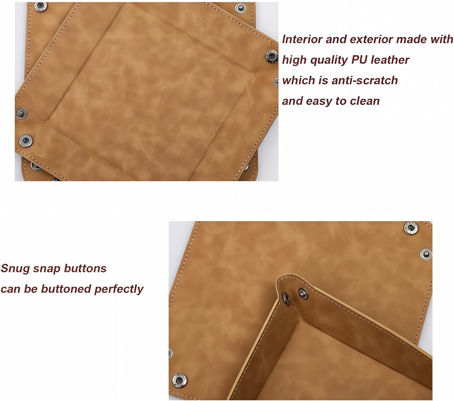• Premium PU leather material with delicate texture and decent nylon stitching, great in keeping the tray shape, and easy to clean, only need wipe gently with wet cloth to renew the sheen.