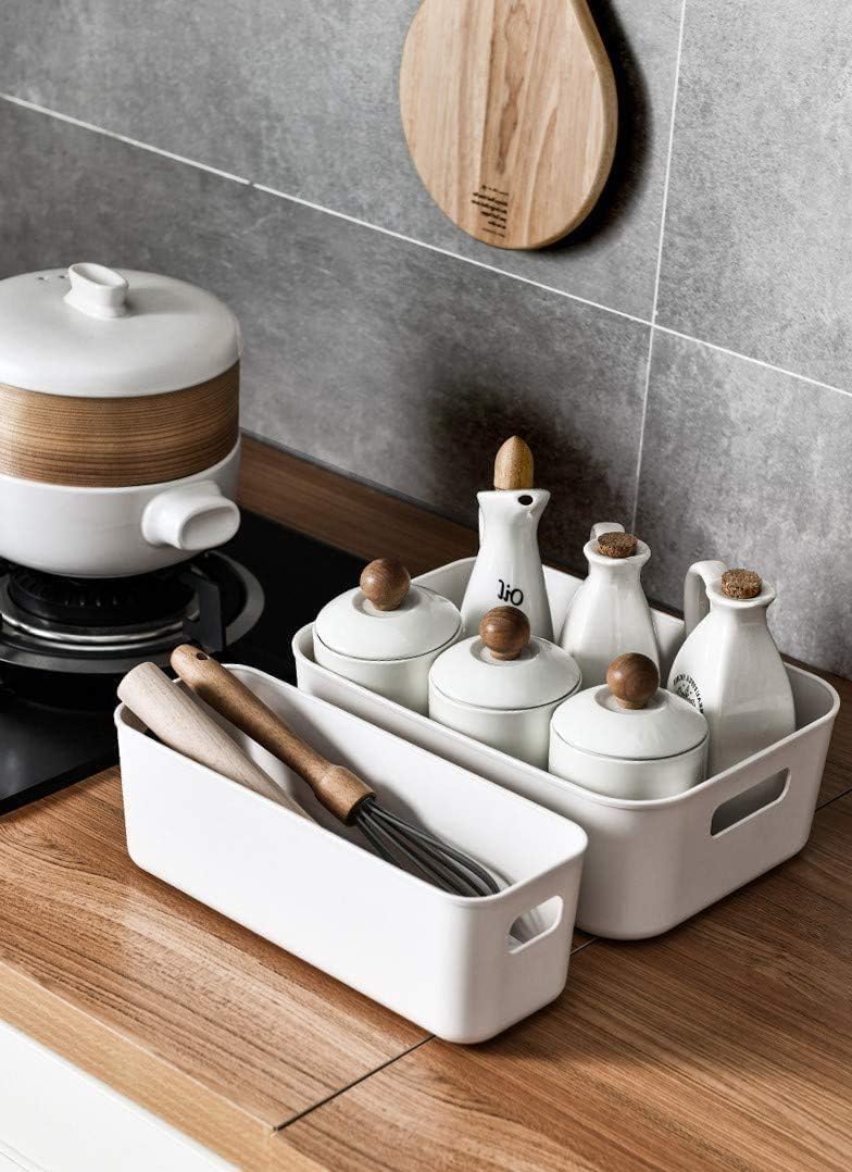 • 5-【Perfect Size】- "11 x 4 x 3.7" These storage shelves will organize your bathroom accessories while fitting in with your kitchen organization and storage. Its Flexible Size will make its use as your storage box, under bed storage, mail organizer and storage drawers. Comes in a value pack of 4 !