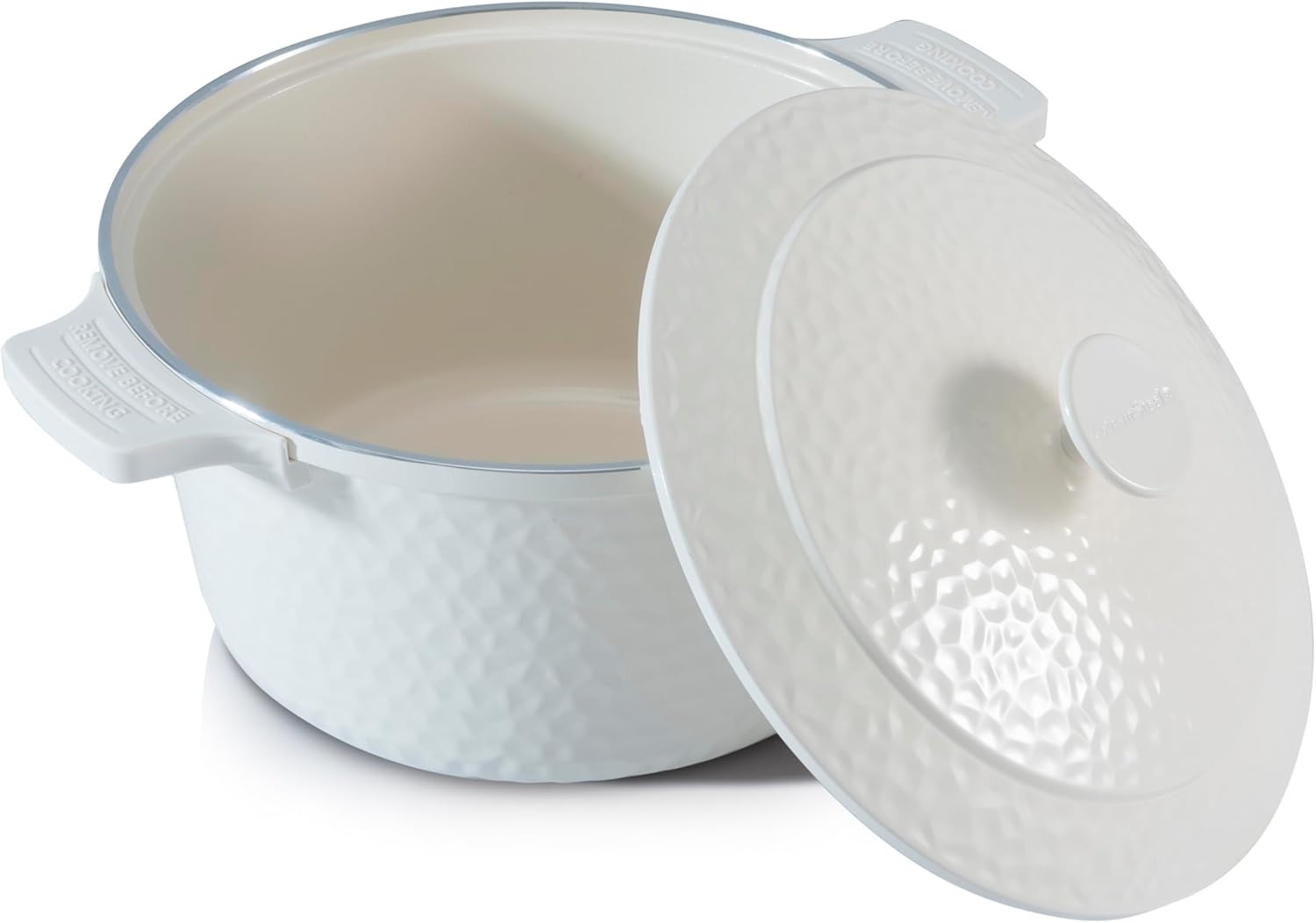 Gotham Steel Hammered 5 Qt Lightweight Dutch Oven Pot with Lid & Holders, Ceramic Non Toxic, Oven Safe & Even Heat Retaining Dutch Oven for Bread Baking Sourdough, Soup, 70% Lighter than Cast Iron