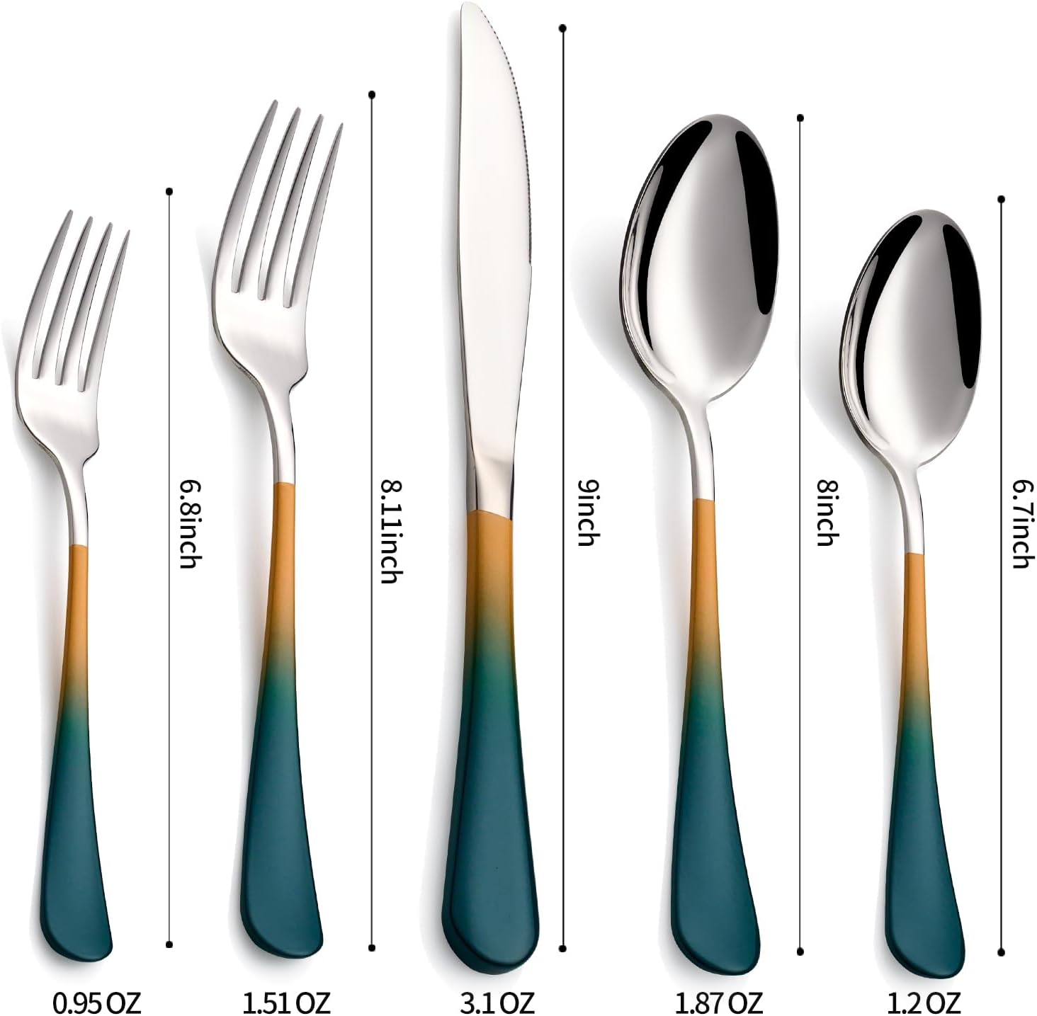 20-Pieces Green Orange Silverware Sets for 4,Green Orange Handle Stainless Steel Cutlery Set, Include Forks Spoons and Knives Set, Dishwasher Safe Utensil Sets for Home Restaurant
