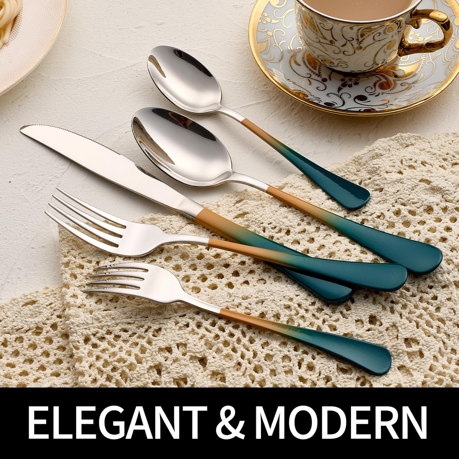 • 【Vibrant Colors】: Elevate your dining experience with this 20-piece stainless steel flatware set featuring eye-catching colored handles.