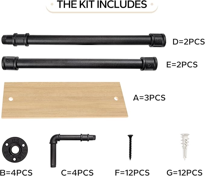 • Vintage Industrial Charm:Featuring a rustic industrial design, this floating shelf combines wooden boards with a distressed finish and iron pipes with a matte black finish for a vintage yet modern look. The anti-rust treatment on the metal ensures durability, making it suitable for both indoor and outdoor use.