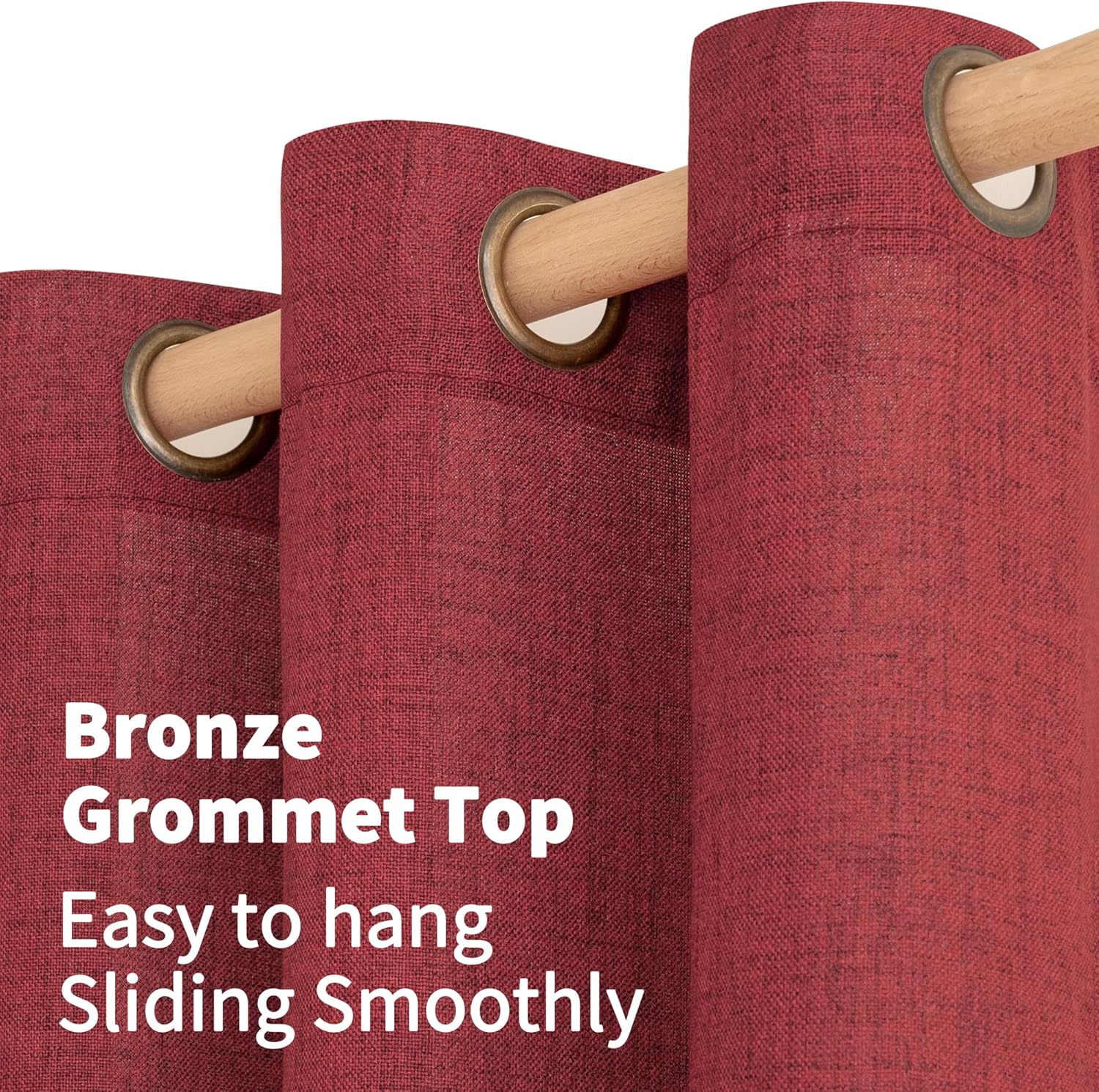 • Package: The package includes set of 2 linen curtain panels. Each linen textured curtain measure 42 inch wide and 40 inch length. Each light filter curtain has 6 vintage bronze grommets with 1.6-inch inner diameter, fit well with most rods. Easy to hang, and slide smoothly.