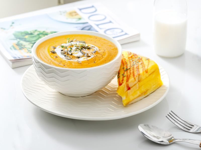 • Pro-grade Porcelain: Hasense dinner bowls are crafted from healthy and chip-resistant ceramic, combining beauty and durability. So the ceramic bowls set of 4 is microwave and dishwasher safe. Fired at high temperatures, the porcelain bowl features with intricate embossed pattern, adding a touch of elegance to your dinner