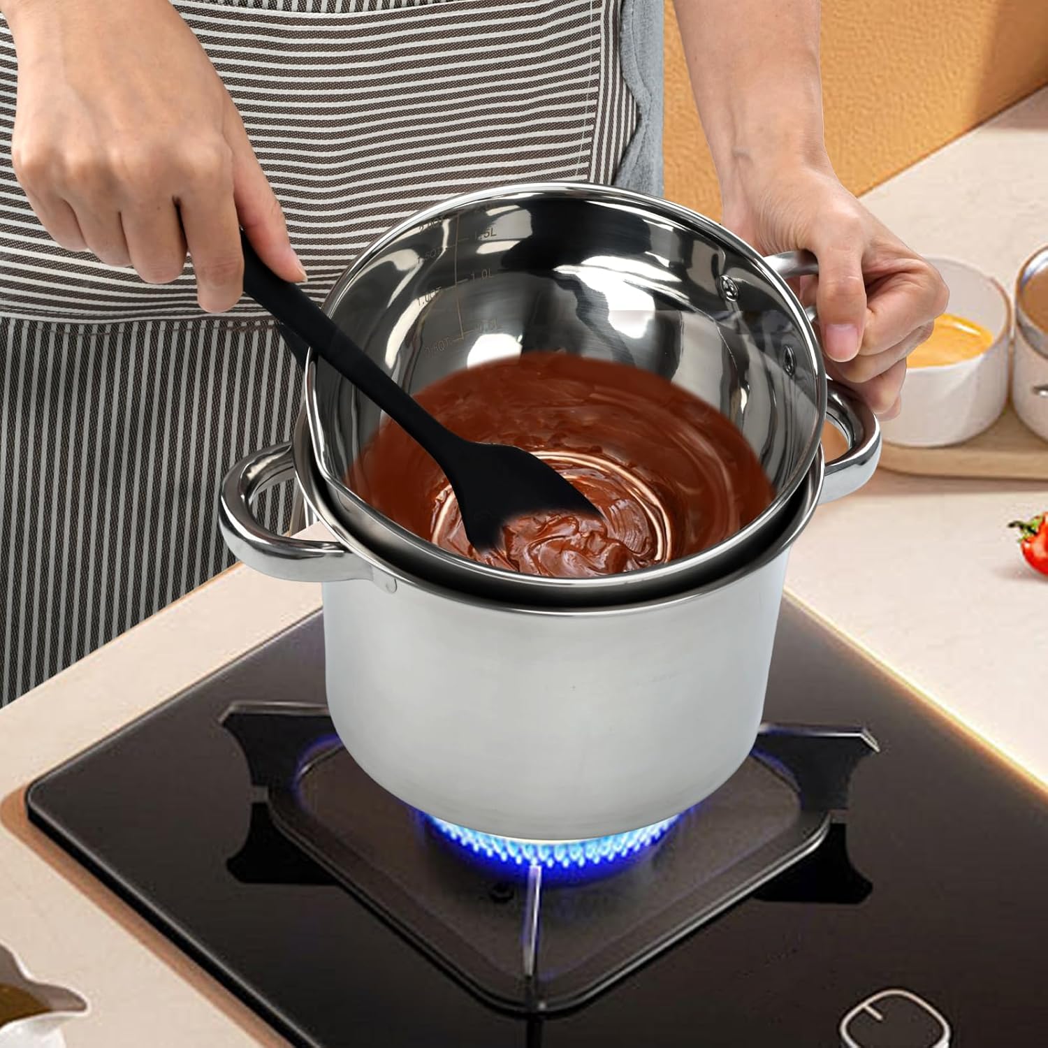 • 【Premium Food-Safe 304 Stainless Steel】The double boiler is crafted from durable, non-toxic 304 stainless steel, both pots are rust-resistant, easy to clean, and built to last. The design ensures gentle, even indirect heat for perfect melting without scorching.