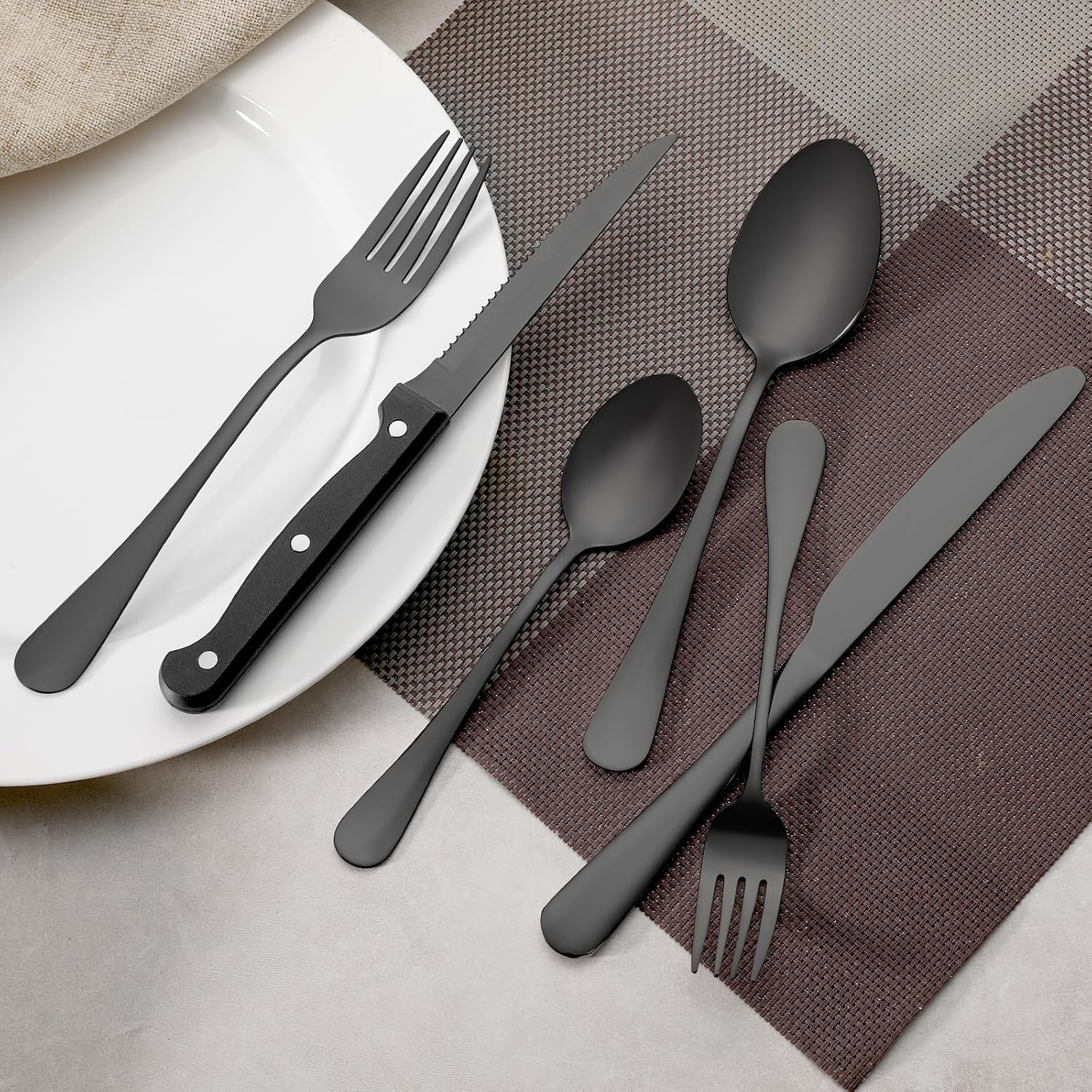 • 12 Black Forks and 12 Black Teaspoons: This set contains 12 pcs black dinner forks and 12 pcs black tea spoons. Not only are they suitable for everyday use, they can also replace your daily lost forks and spoons, complement your cutlery set. If you just want to buy forks, spoons and not a whole set of utensils, they will be a good choice. Ideal for families, restaurants, hotels, buffets, parties, weddings, camping, parties and entertainment.