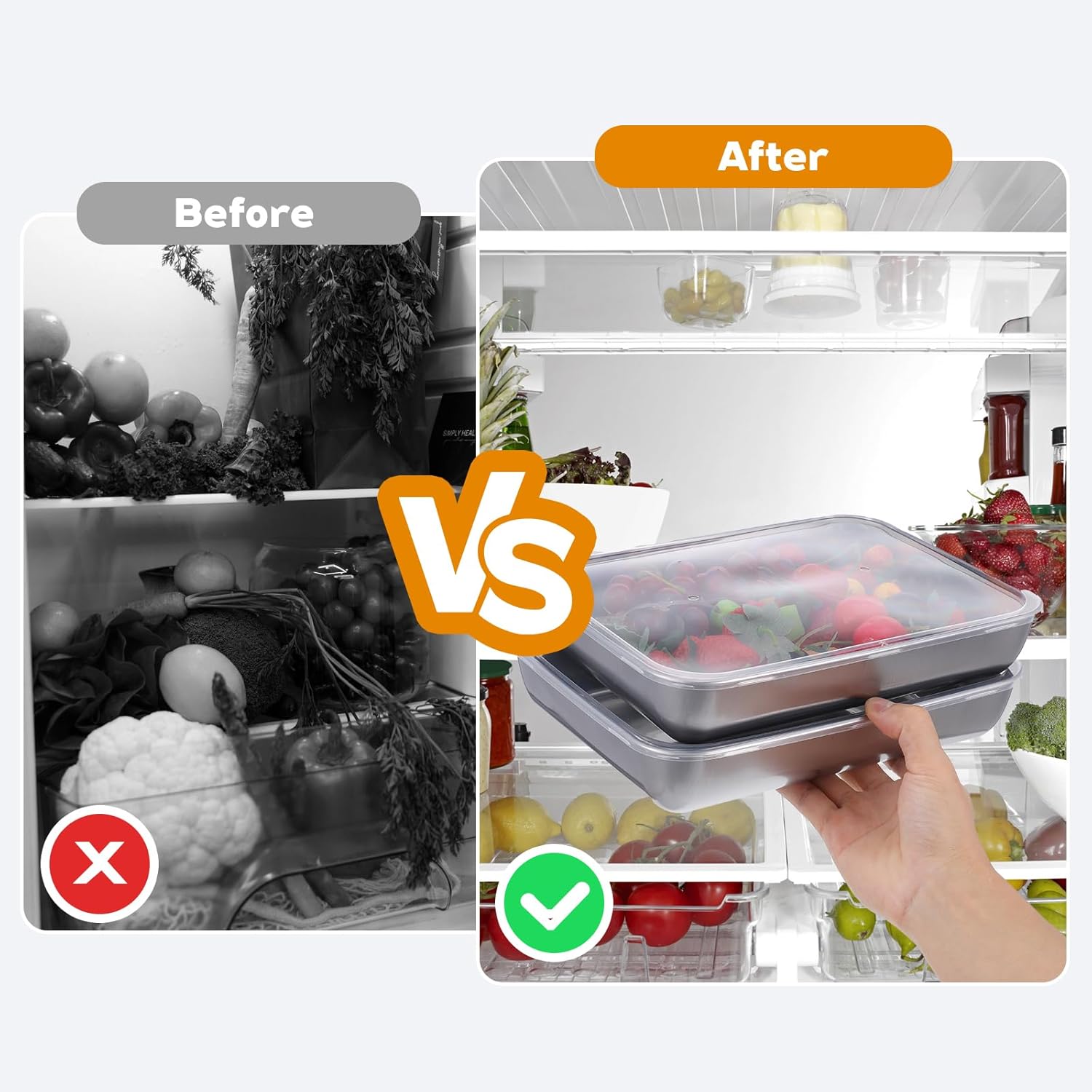 • With Dust-proof Lids: Stainless steel food containers come with matching clear lids to help keep food safe and fresh. The airtight, leak-proof design ensures your food is securely sealed, preventing spills and contamination. Stainless steel snack containers with lids also protect food from dust and external elements, which is especially important for long-term storage in the refrigerator or pantry