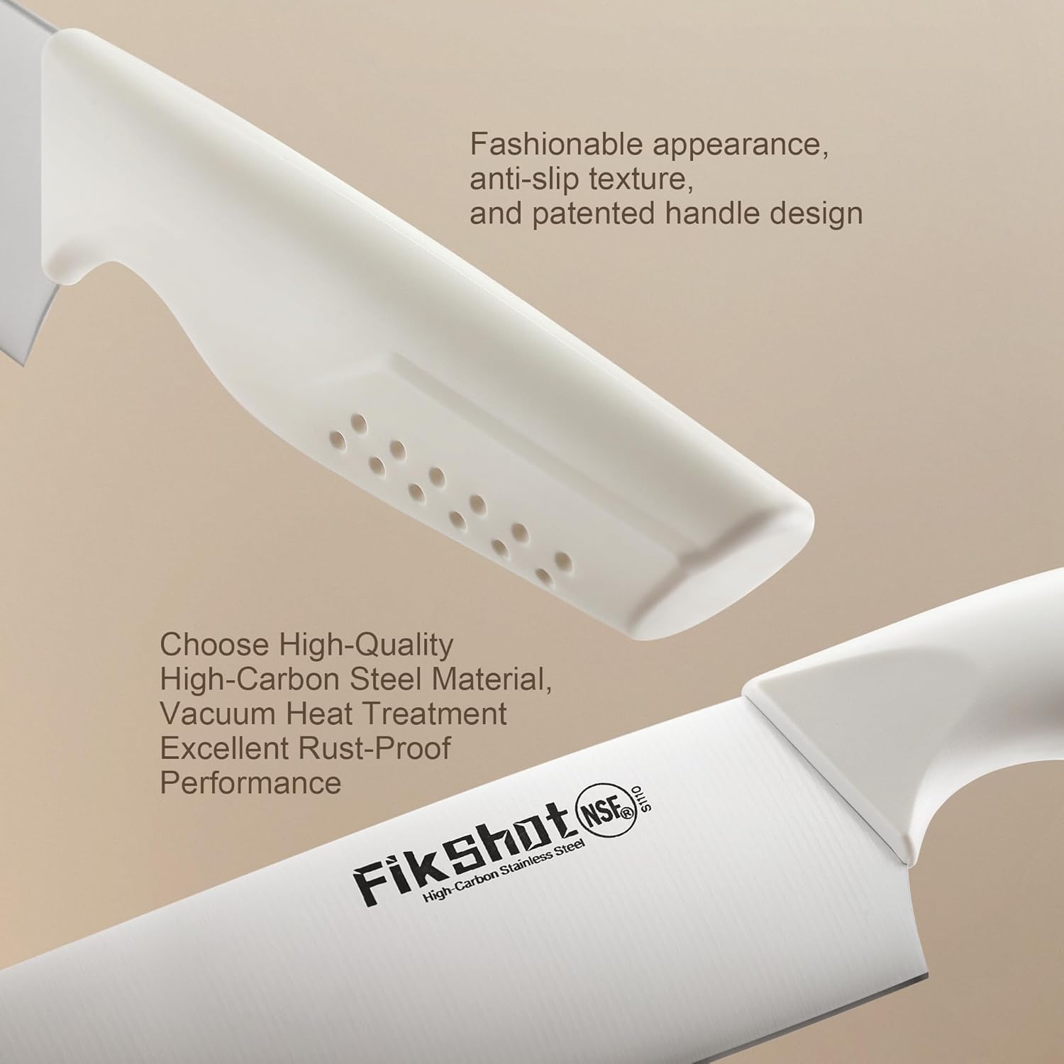 • Premium Knife Set – Sharp, Simple, Stainless-Steel & NSF-Certified – features professional-grade stainless steel blades that stay razor-sharp and rust-resistant. Its minimalist design delivers precision cutting with easy maintenance, meeting NSF standards for safety and quality.