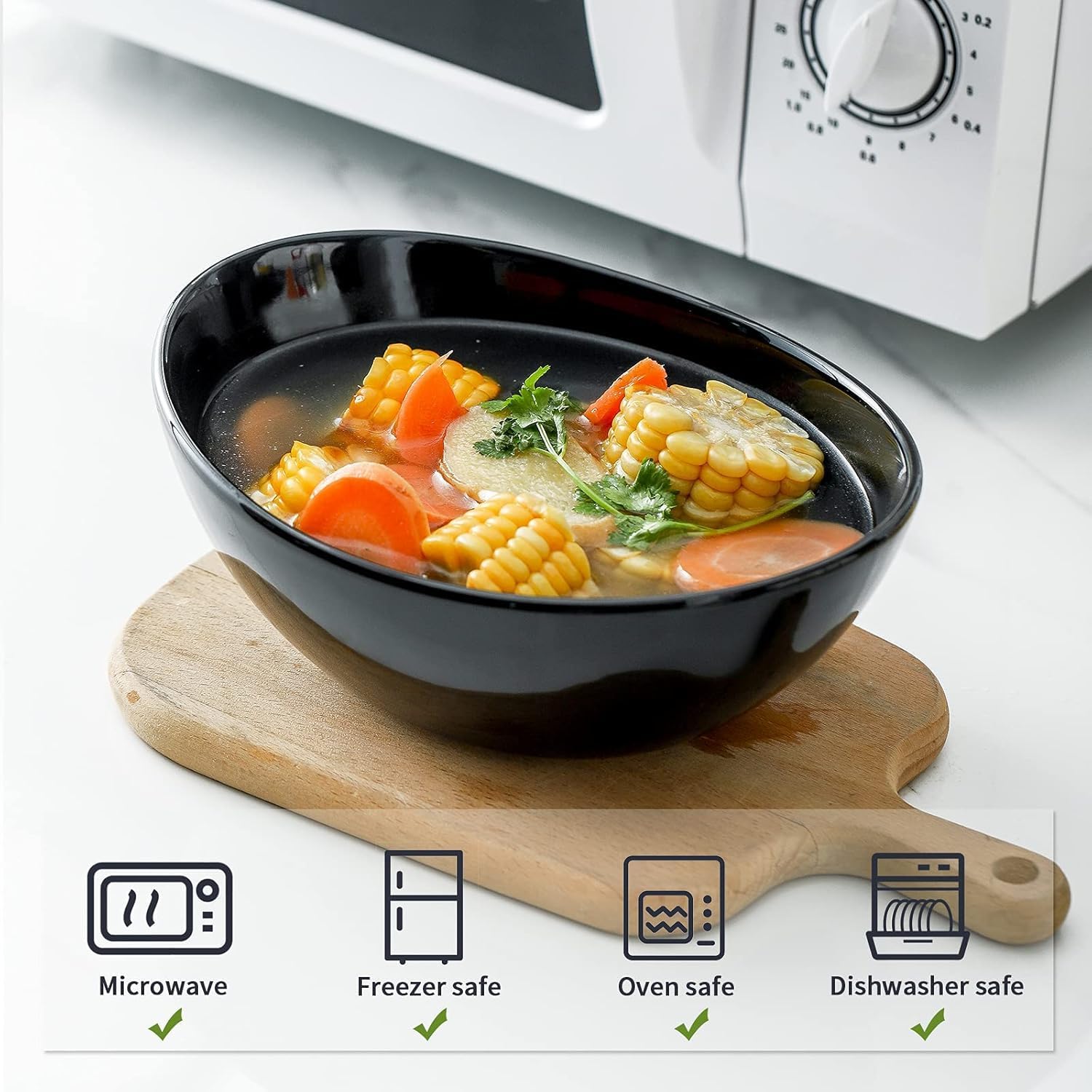 Hasense 40oz Salad Bowls, Large Serving Bowls, Porcelain Soup Bowls for Kitchen, Porcelain Ceral Bowls for Entertaining Parties, Dishwasher Microwave Safe, Set of 4, Black