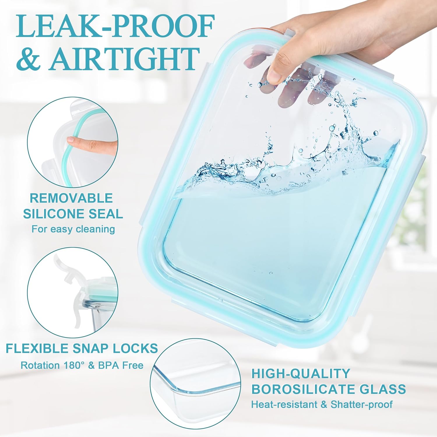 • Air-Tight & Leakproof: GEHE airtight food containers are designed with removable silicone seal and snap locking lids to prevent your food, sauces or soup from spilling or leaking, ensure your prep meal's temperature last longer time and maintain freshness of your food. Compared to other glass food containers, it's also very convenient for you to flip open and shut the lids instead of worrying about lids breakage after long-term use.