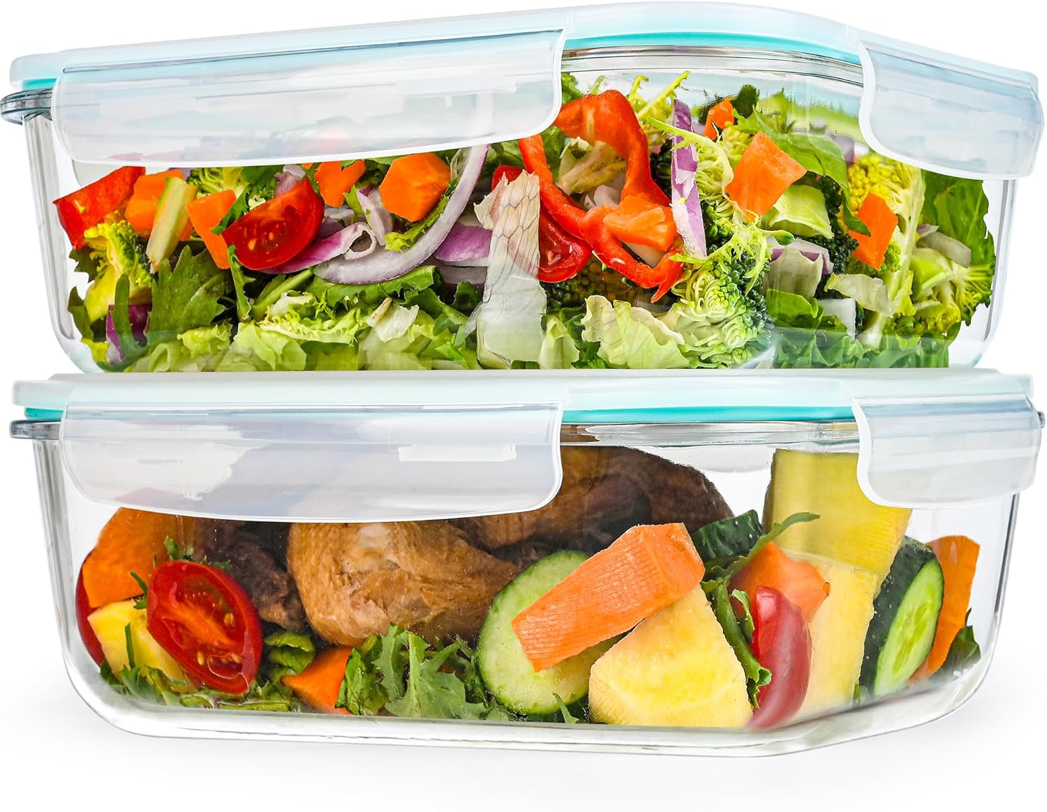 • 2-Pack Large Food Containers with Lids: Including 2-pack glass food storage containers with 2 lids, each holds 78oz/2260ml/9.8 cups. Suitable for a variety of occasions, like family meal prepping, office lunches, salads and vegetables storage, outdoor picnics, storing leftovers, baking and roasting chicken.