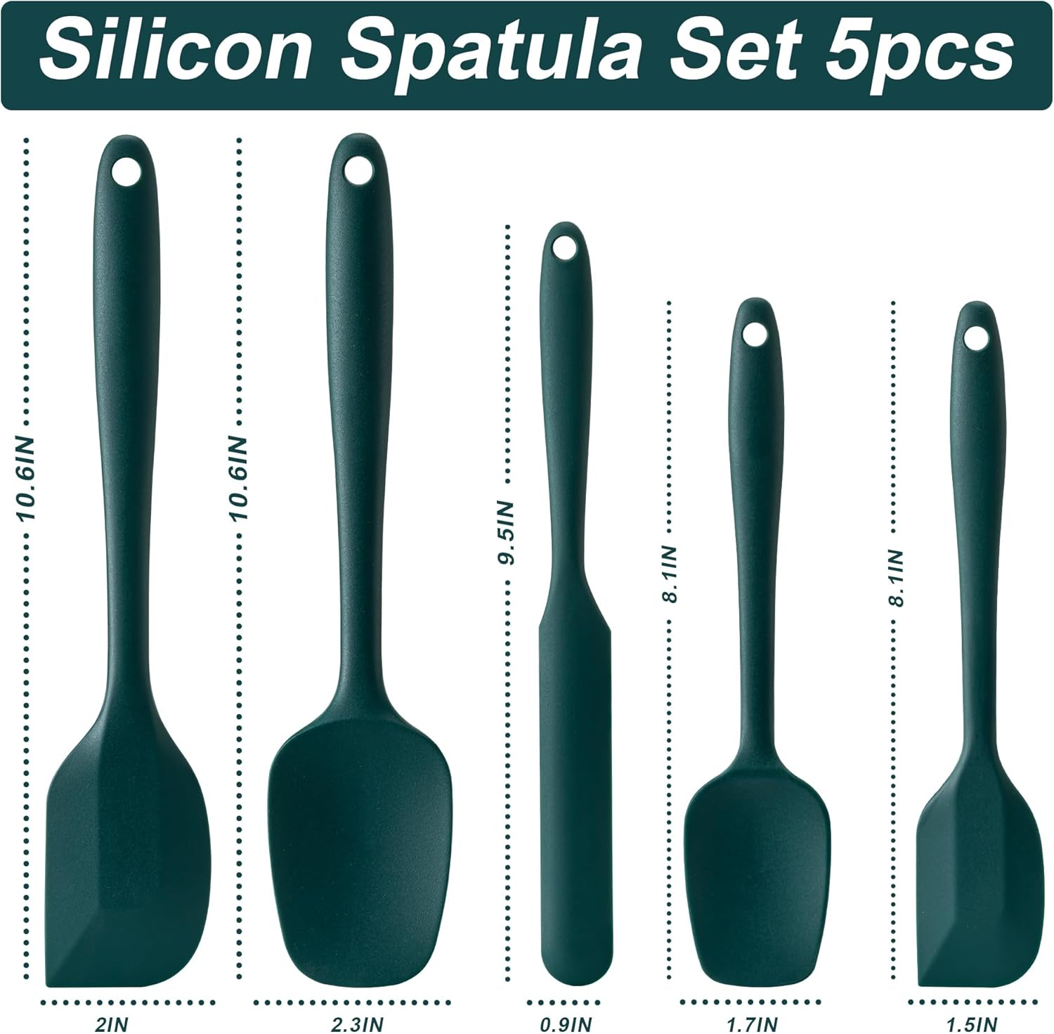 Silicone Spatula Set, 5 Piece Food Grade Rubber Spatulas for Baking, Cooking, and Mixing High Heat Resistant Non Stick Dishwasher Safe BPA-Free (Dark Green)