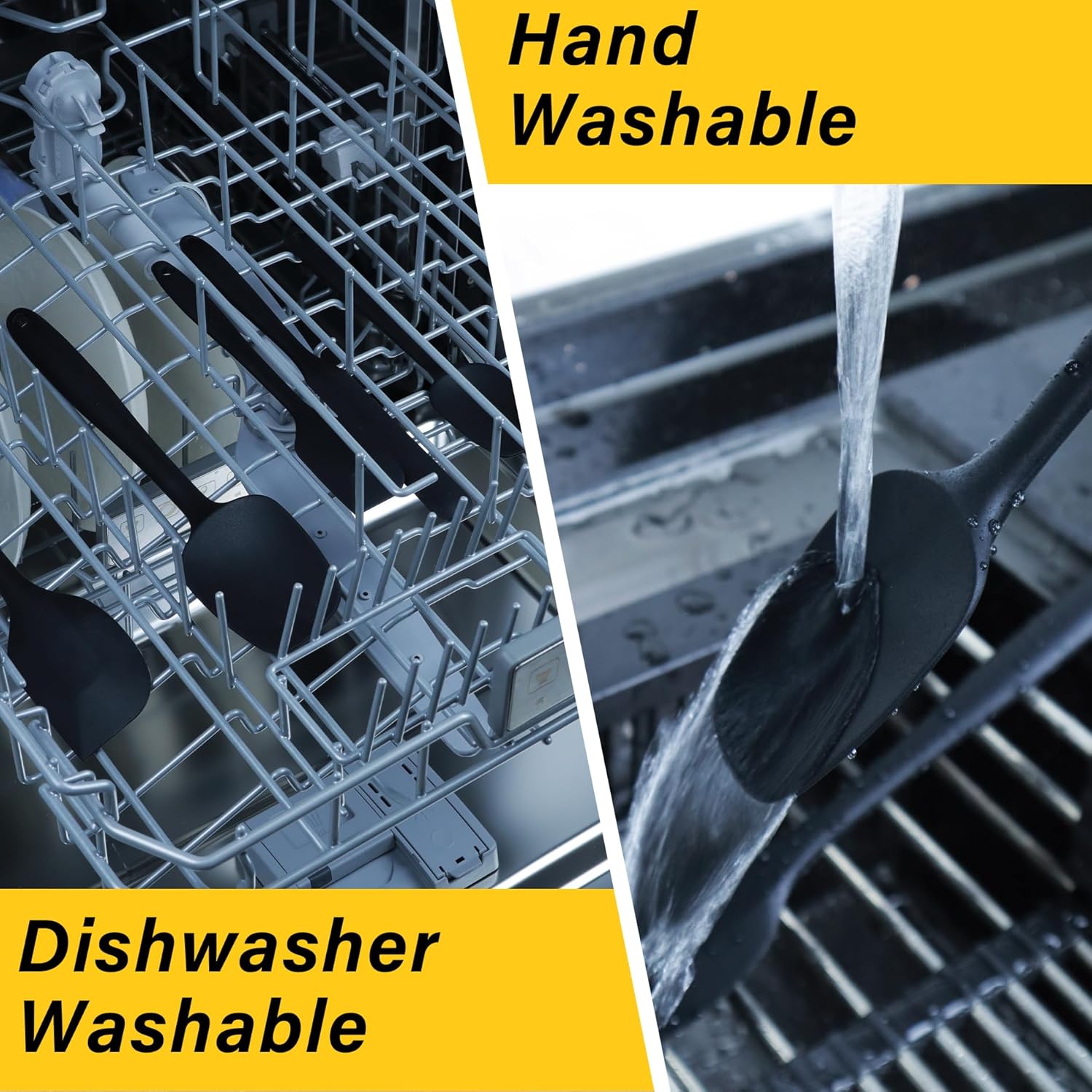 • 【 Seamless One Piece Design 】:Seamless one piece design the handle will never enter the water. Sturdy and durable,soft Handle and noiseless, thin and flexible edge, Perfect for baking ,cooking and mixing etc.