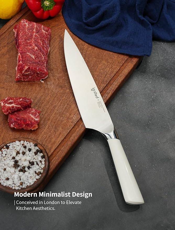 • 【Professional Chef Knife】 8-inch Ignited kitchen knife for home or restaurant use. Perfect cooking knife for slicing meat, fish, fruits, and vegetables with precision.