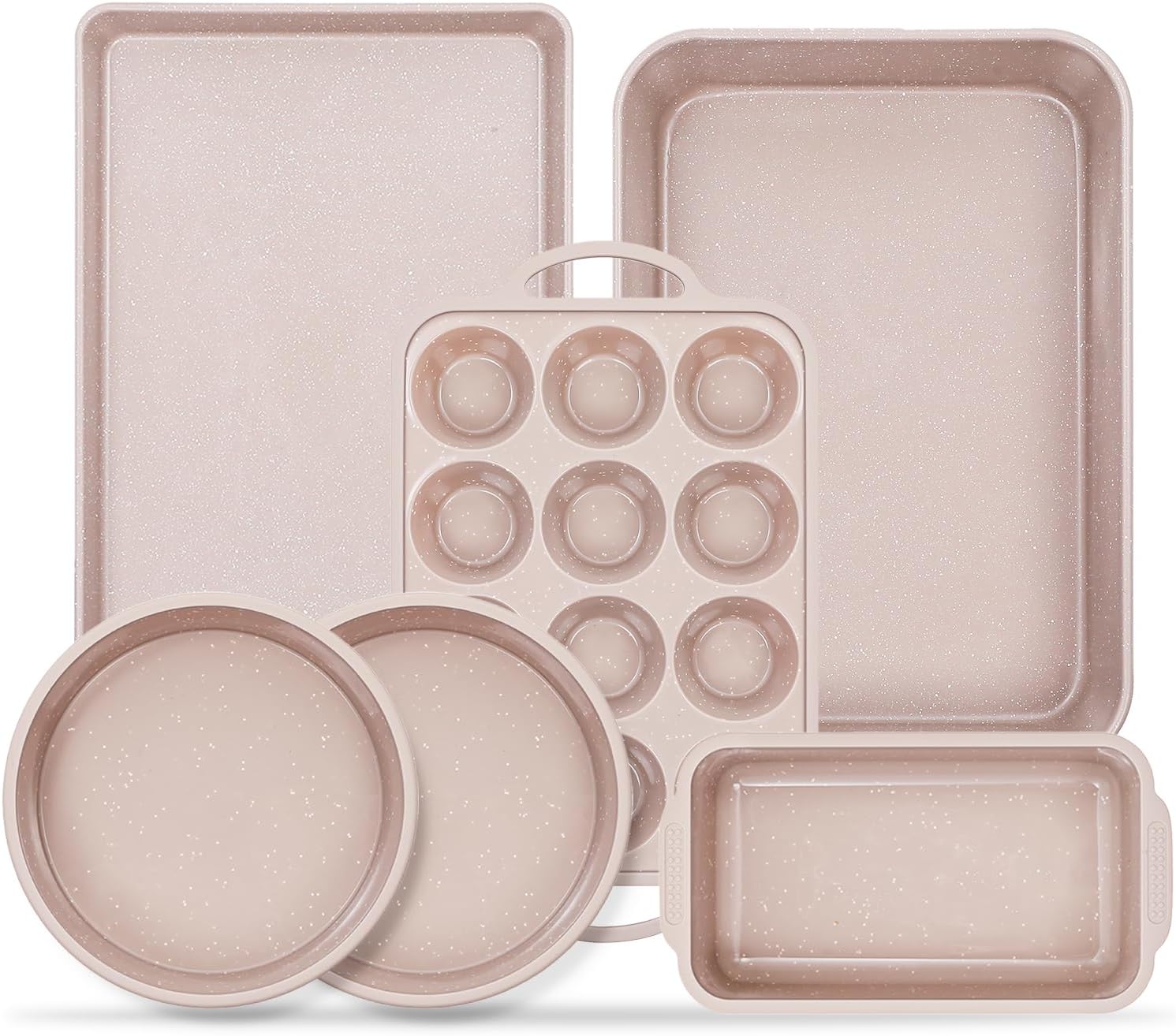 • Effortless Cleaning: Say goodbye to stuck-on food and scrubbing for hours! Our entire set is designed for ultimate nonstick performance. Your cookies, muffins, and bread will slide right out, making serving a snap. Simply wipe pans clean or place them all in the dishwasher for a completely hassle-free cleanup, giving you more time to enjoy with your family.