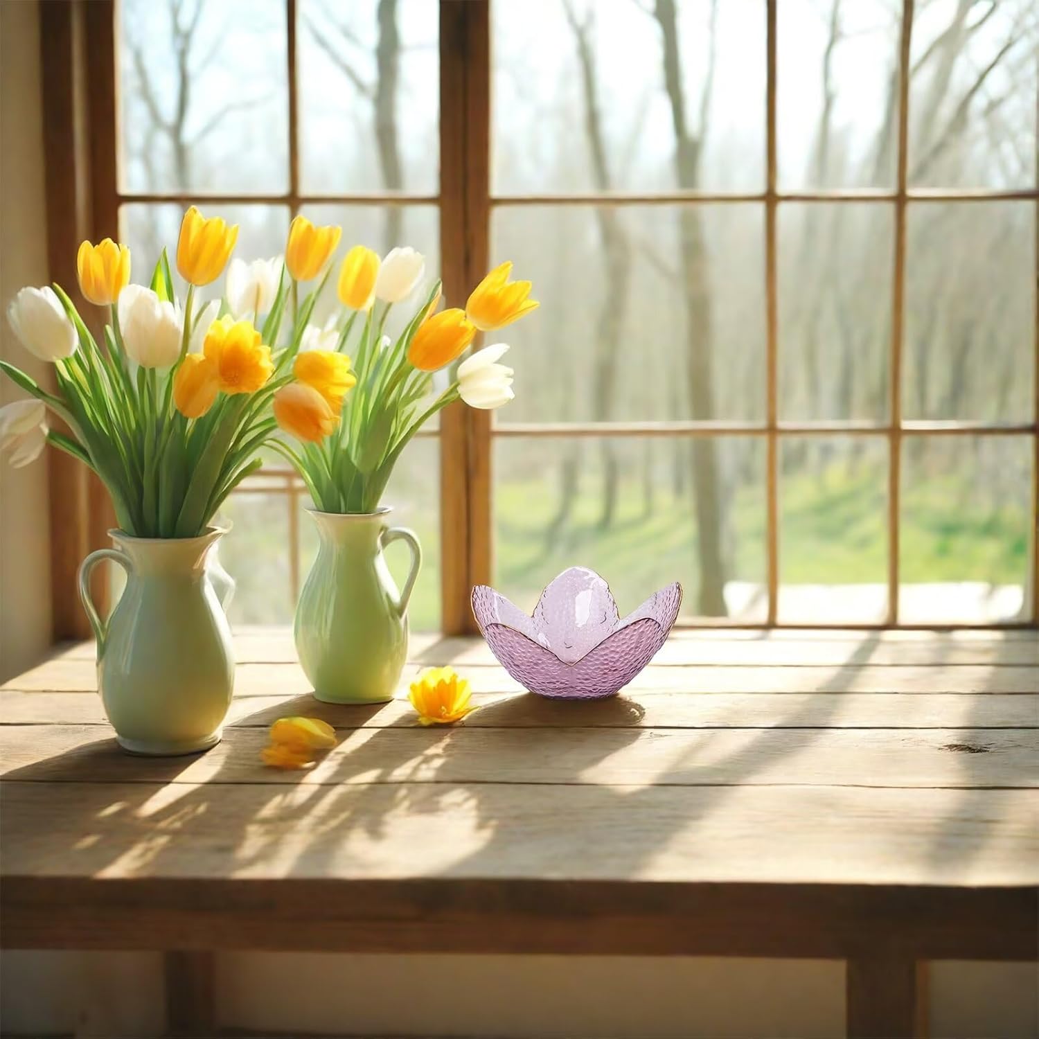 Small Purple Flower Jewelry Dish, Glass Jewelry Ring Tray Trinket Bowl, Nightstand Decor Ring Holder for Women, Wedding, Birthday, Mother's Day Gifts for Women