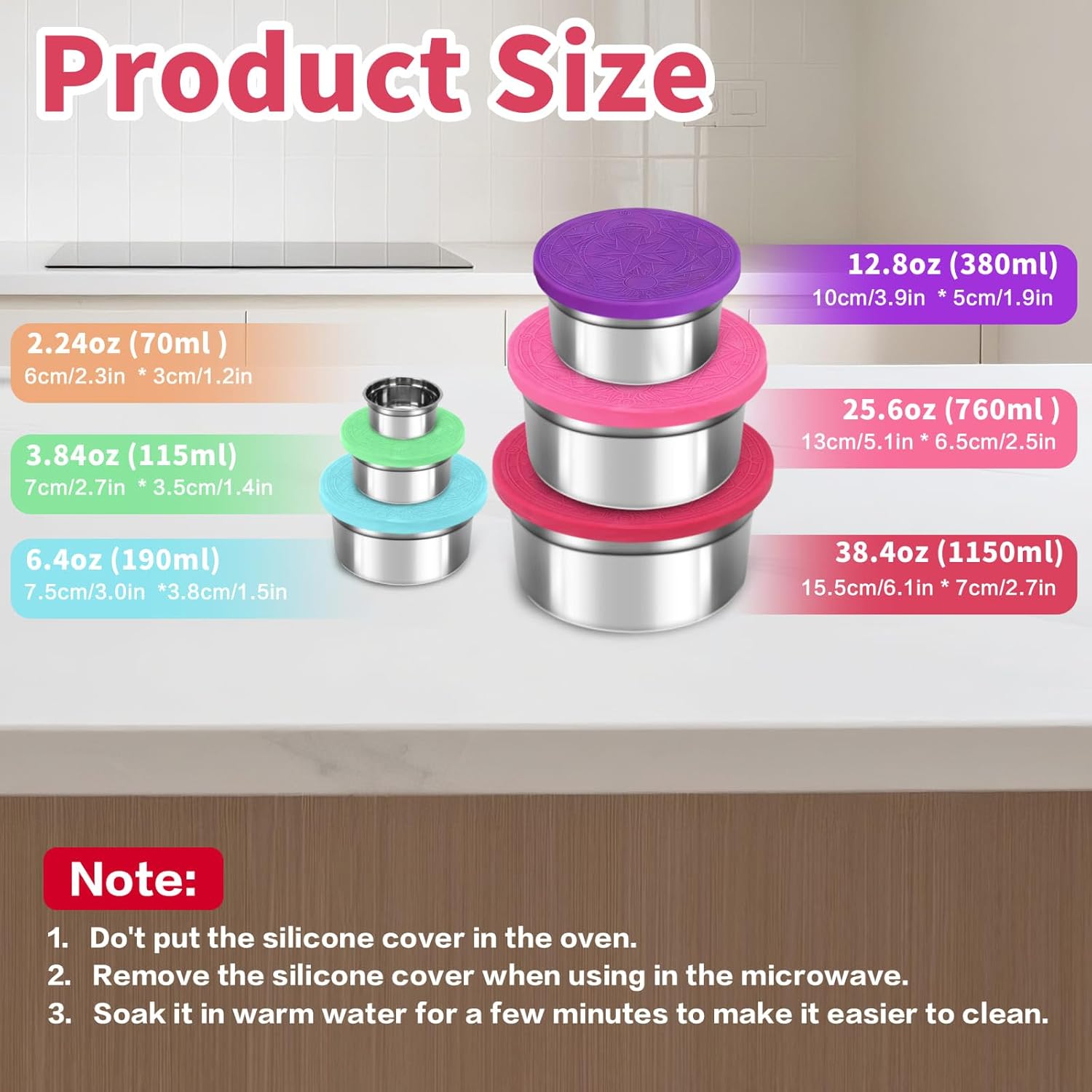 • Reusable Snack Containers with Lids: The metal food storage set includes 6 containers in various sizes to accommodate your diverse storage needs – 38.4oz, 25.6oz, 12.8oz, 6.4oz, 3.8oz, and 2.2oz. Perfect for storing snacks, meals, condiments, and so on