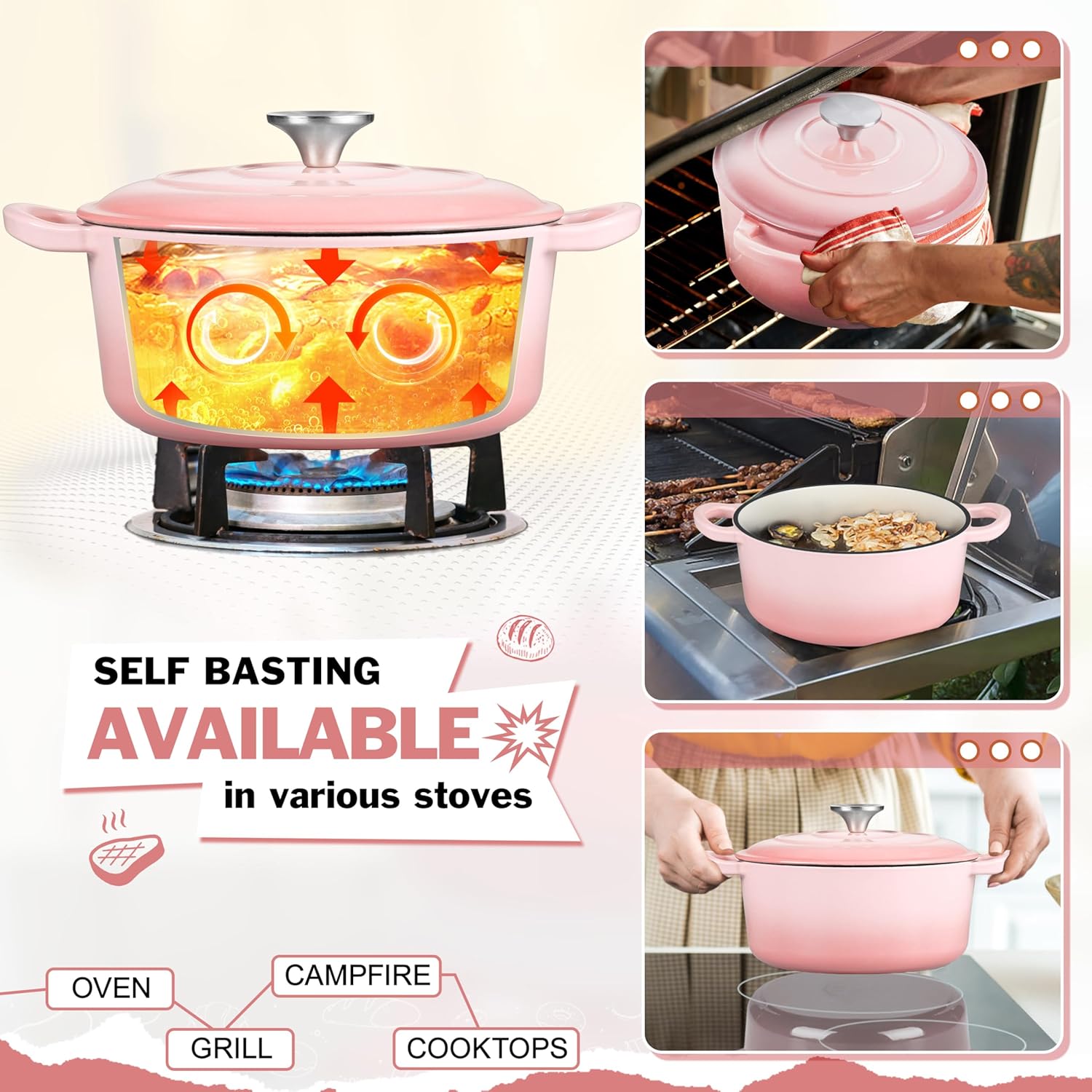 • SMOOTH ENAMEL FINISH - With multiple enamel layers for effortless clean-up and rust resistant, No stubborn or sticky food remaining, Food grade material ensure healthy use without releasing harmful substances or worrying peeling coatings, Mordern pink from light to dark matches your kitchen or dinner table settings