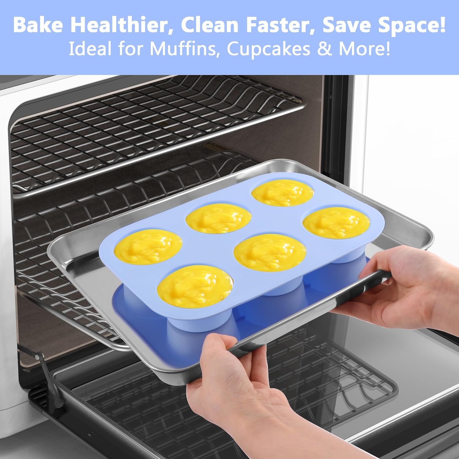 3-Pack 6-Cup Silicone Muffin Pans, Nonstick Cupcake Baking Molds, Muffin Cupcake Pans Molds for Baking, BPA/PFA-Free, Dishwasher & Oven Safe - Blue