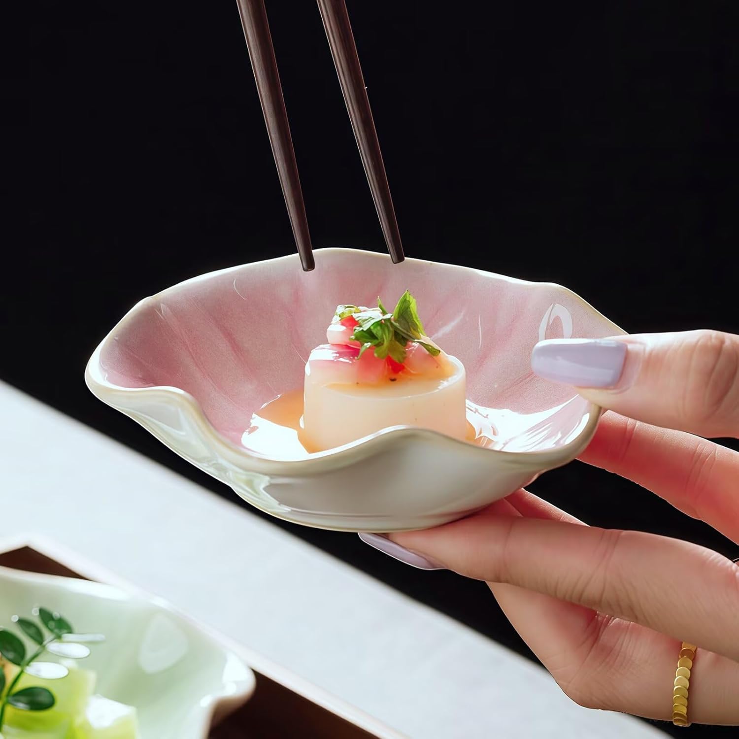 2Pcs Ceramic Jewelry Dish - Lotus Leaf Shape, for Ring Holder Necklace Small Key, Suitable for Mother Friend Sister, Gifts for Women, Cute Plate Trinket Tray, Home Decor (Pink-2PCS)