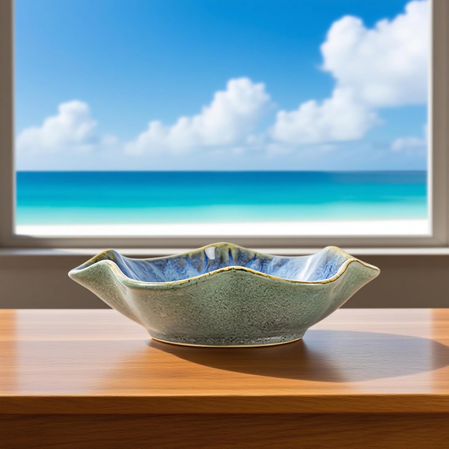 2Pcs Ceramic Jewelry Dish - Lotus Leaf Shape, for Ring Holder Necklace Small Key, Suitable for Mother Friend Sister, Gifts for Women, Cute Plate Trinket Tray, Home Decor (Light Blue & Blue)