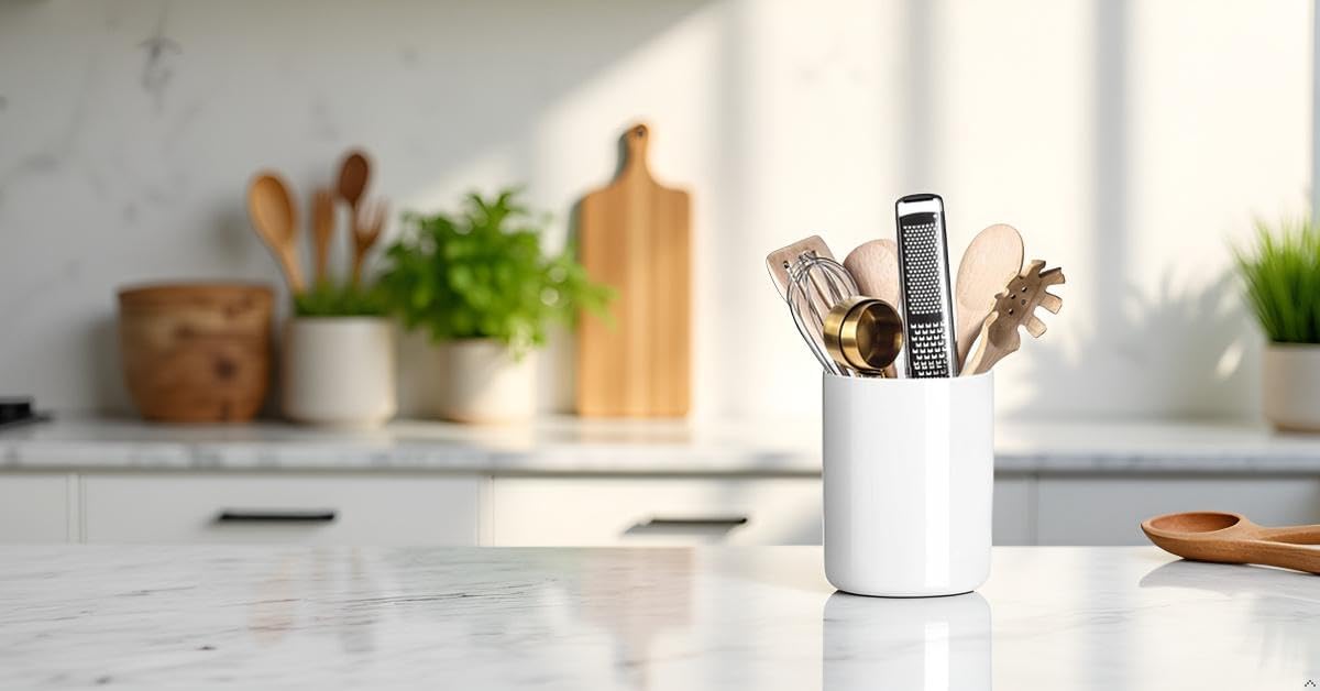 • MULTIFUNCTIONAL LARGE KITCHEN UTENSIL HOLDER — our large white utensil holder with nested white spoon rest make the perfect set to keep your kitchen organized and countertop looking great; try pairing this gorgeous and generously sized white and gold utensil holder with our white and gold kitchen utensils for the ultimate matching moment.