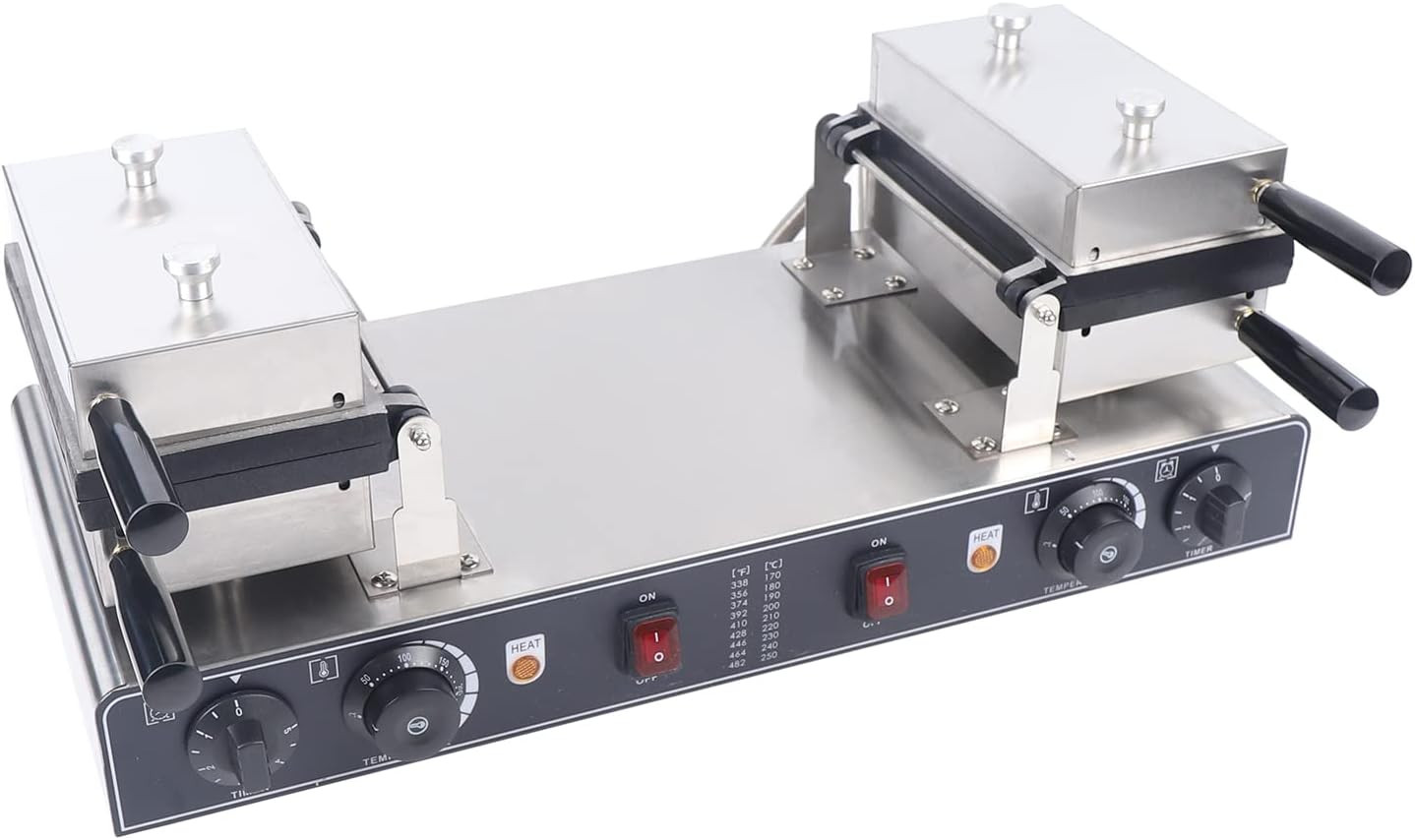 • 【Smart Control】: This walnut cake maker is equipped with two set separate control knobs of temperature and time for each plate, which allow you to easily set the temperature from 32℉ to 572℉ and time from 0 to 5min separately, making usage more intelligent and convenient.