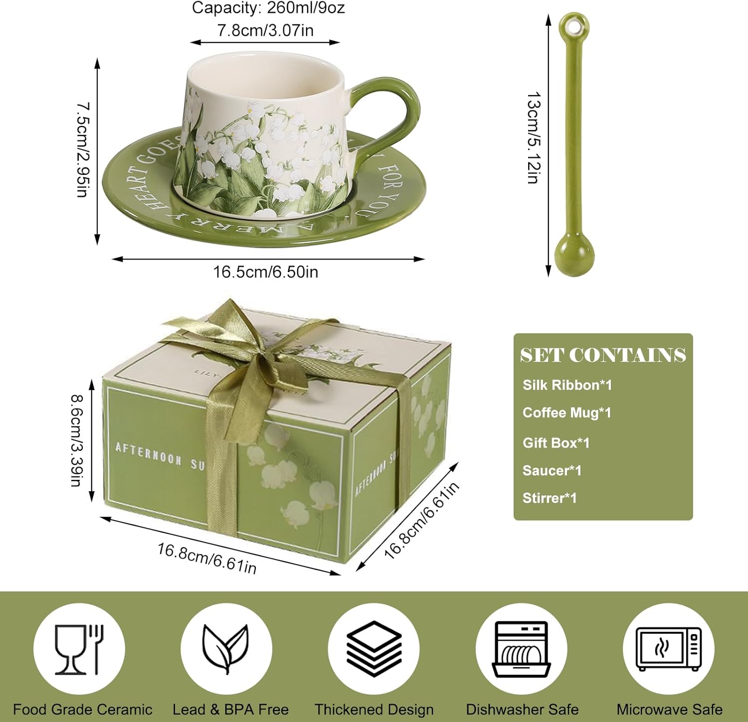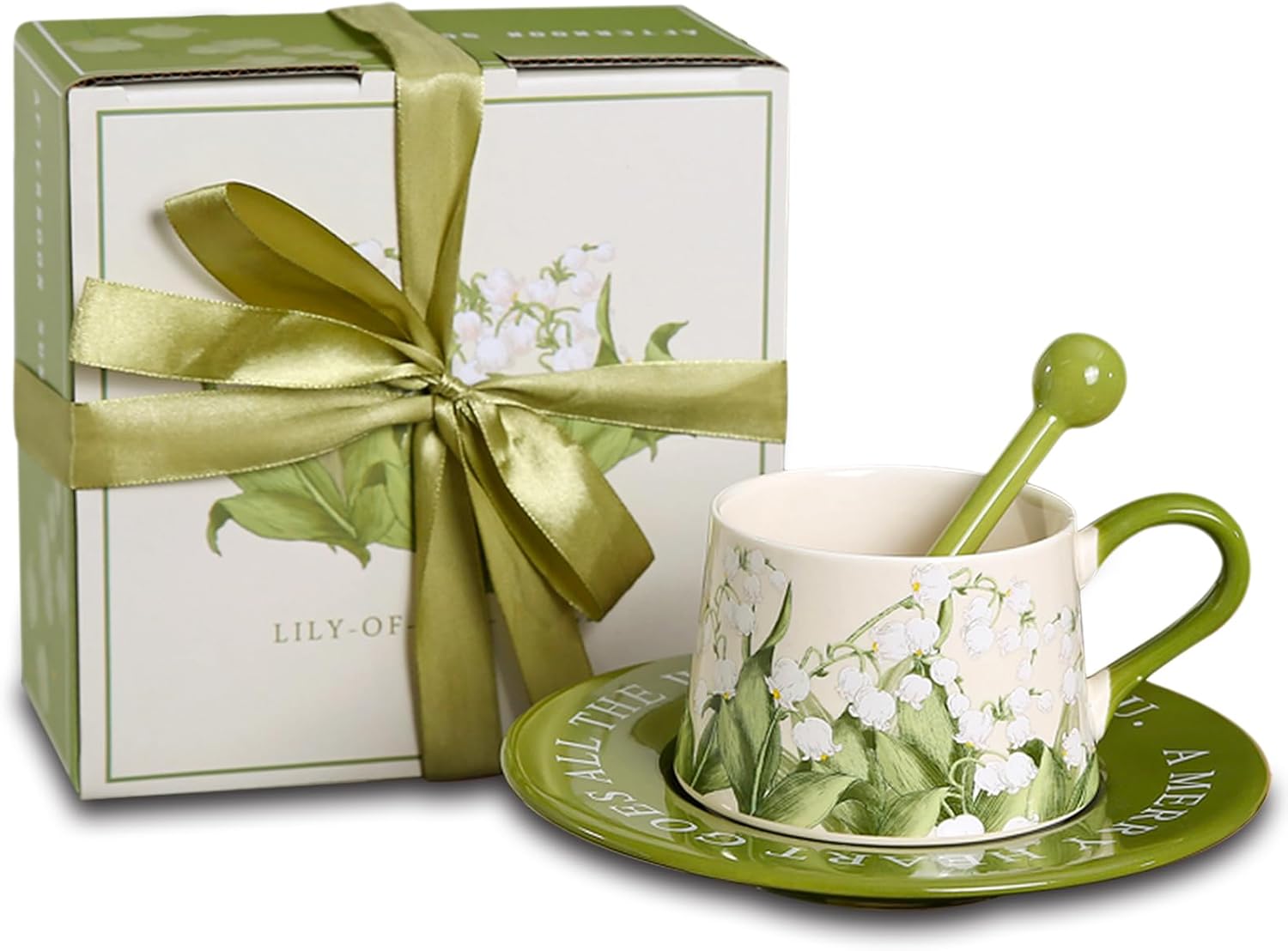 • 【Perfect Gifts for Women】Llily of the valley has profound meanings, symbolizing happiness and good wishes, as well as purity, luck and hope. Choosing this mug set as a gift can express your best wishes to others. It is an ideal birthday gift, Christmas gift, Valentines gift, Thanksgiving gift, friendship gift, graduation gift, Teacher's Day gift, wedding gift, and new home gift.