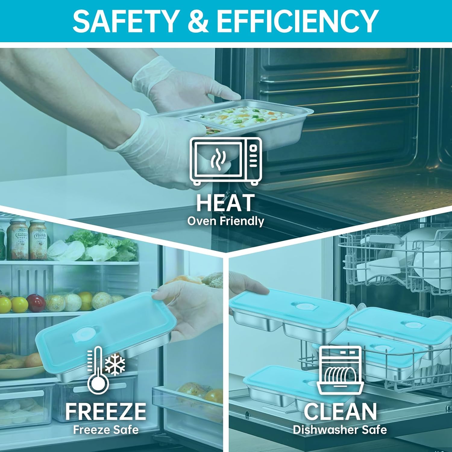 • Dishwasher-Safe & Stain-Resistant - No-scrub snack pack containers! Toss them in the dishwasher—stainless steel sandwich container surfaces repel odors and resist stains (bye-bye tomato sauce ghosts!). Save time for life’s adventures, not scrubbing. They are not microwave safe