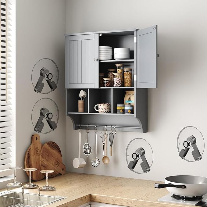 • Space-Saving Pot Lid Holder - Tired of messy and haphazardly placed pot lids? Using Tekunao's lid organization can keep your kitchen clean and tidy. There are 2 lid hooks in the package to help you organize your cluttered lids!