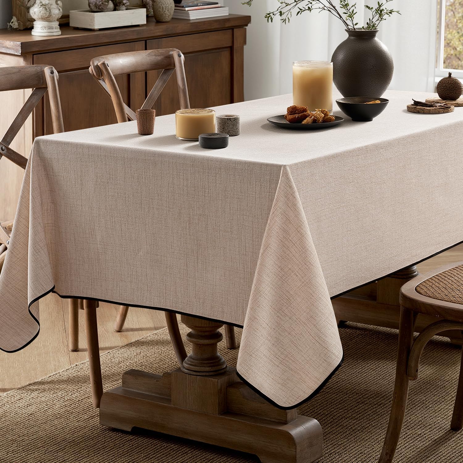 MIULEE Natural-Black Linen Tablecloth 60x104 Inch Rectangle Table Cloth Waterproof,Stain Resistant & Wrinkle Resistant for Dining Party Wedding