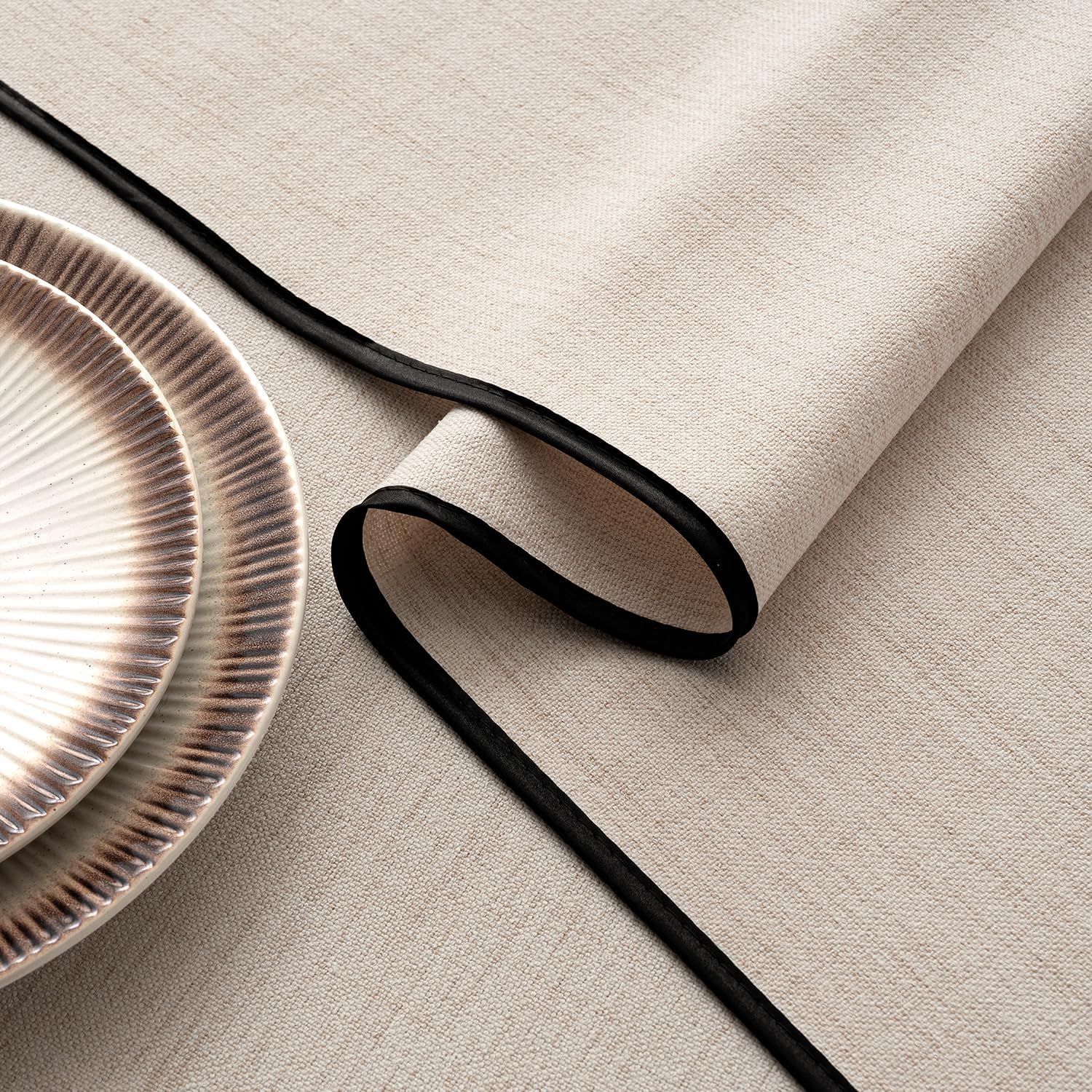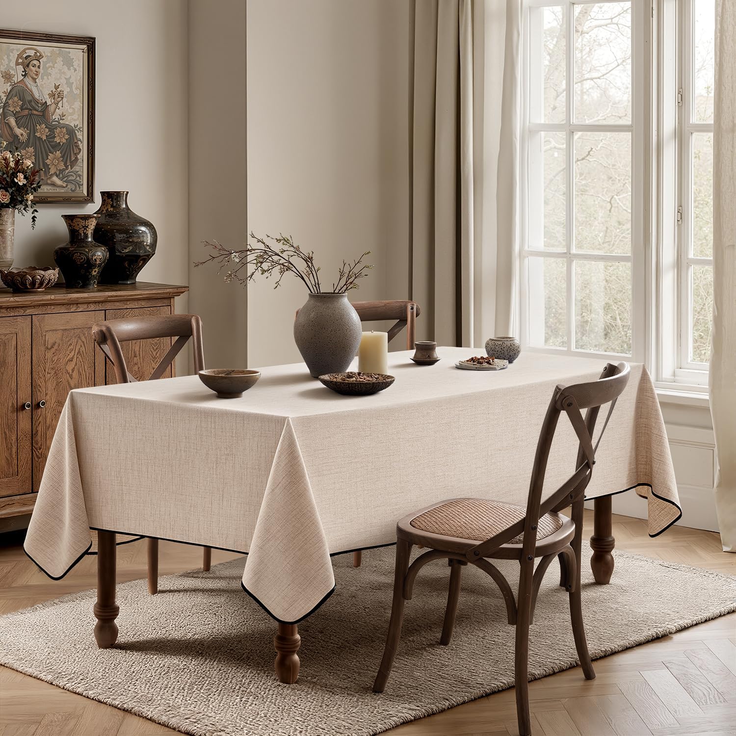 MIULEE Ivory-Black Linen Tablecloth 60x84 Inch Rectangle Table Cloth Waterproof,Stain Resistant & Wrinkle Resistant for Dining Party Wedding