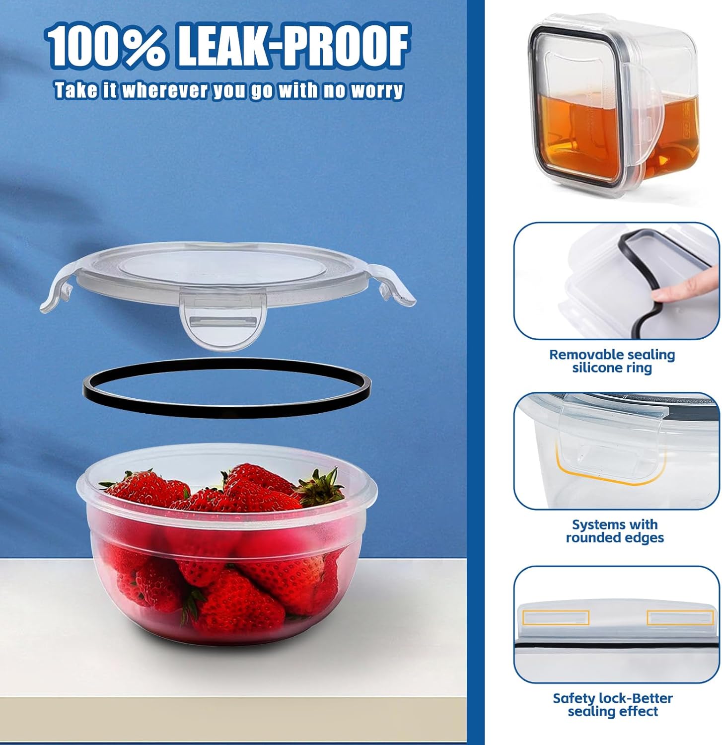 • 【100% Safe & Leakproof - Fresh Food Guaranteed】: Made from 100% BPA-free food-grade plastic that's safer and stronger than dollar-store containers! These airtight food storage containers feature leakproof seals to lock in freshness—ideal for soups, meal prep containers, or on-the-go use with lunch containers for adults.