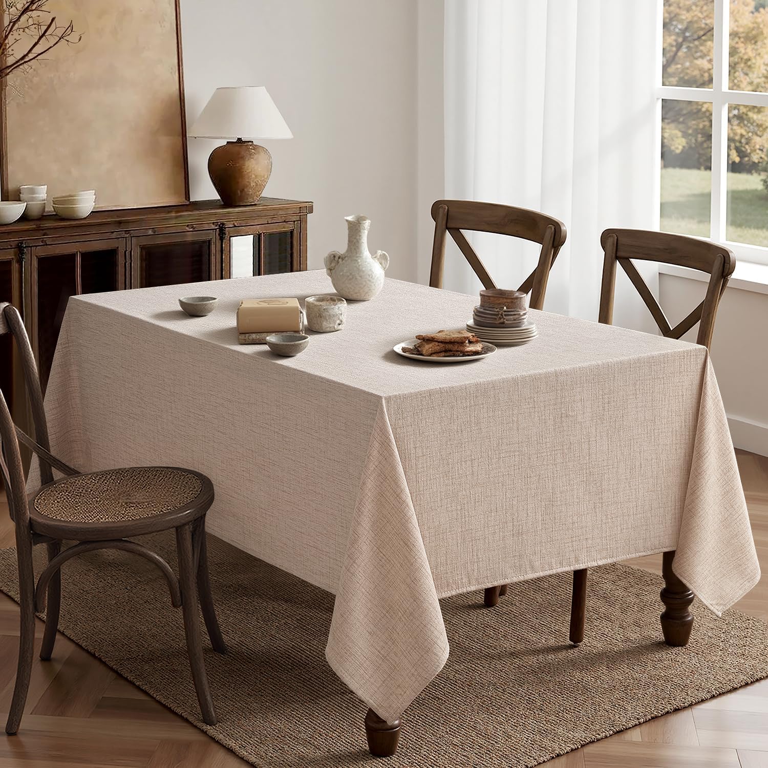 MIULEE Natural Linen Tablecloth 52x70 Inch Rectangle Table Cloth Waterproof,Stain Resistant & Wrinkle Resistant for Dining Party Wedding
