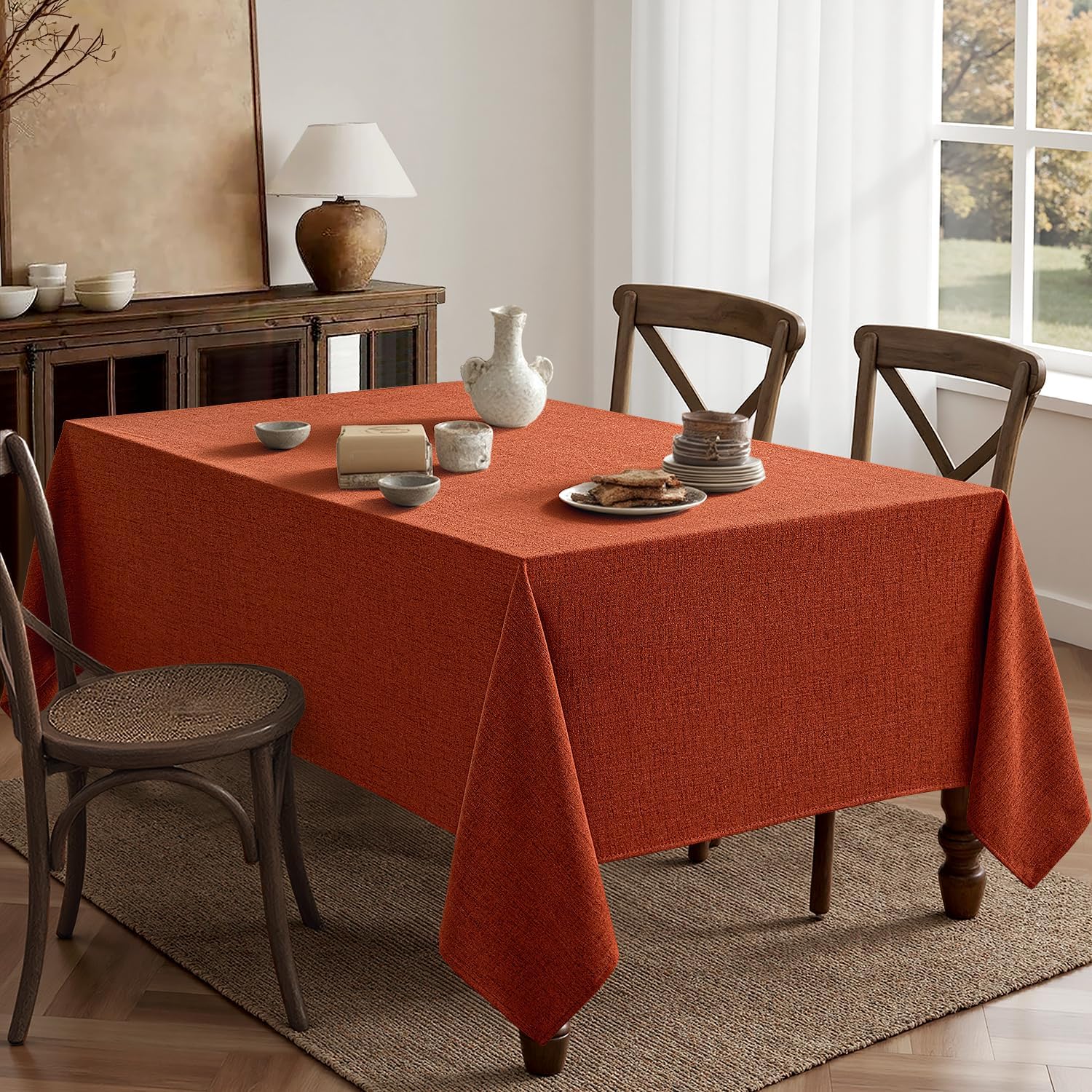 MIULEE Burnt Orange Linen Tablecloth 60x104 Inch Rectangle Table Cloth Waterproof,Stain Resistant & Wrinkle Resistant for Dining Party Wedding