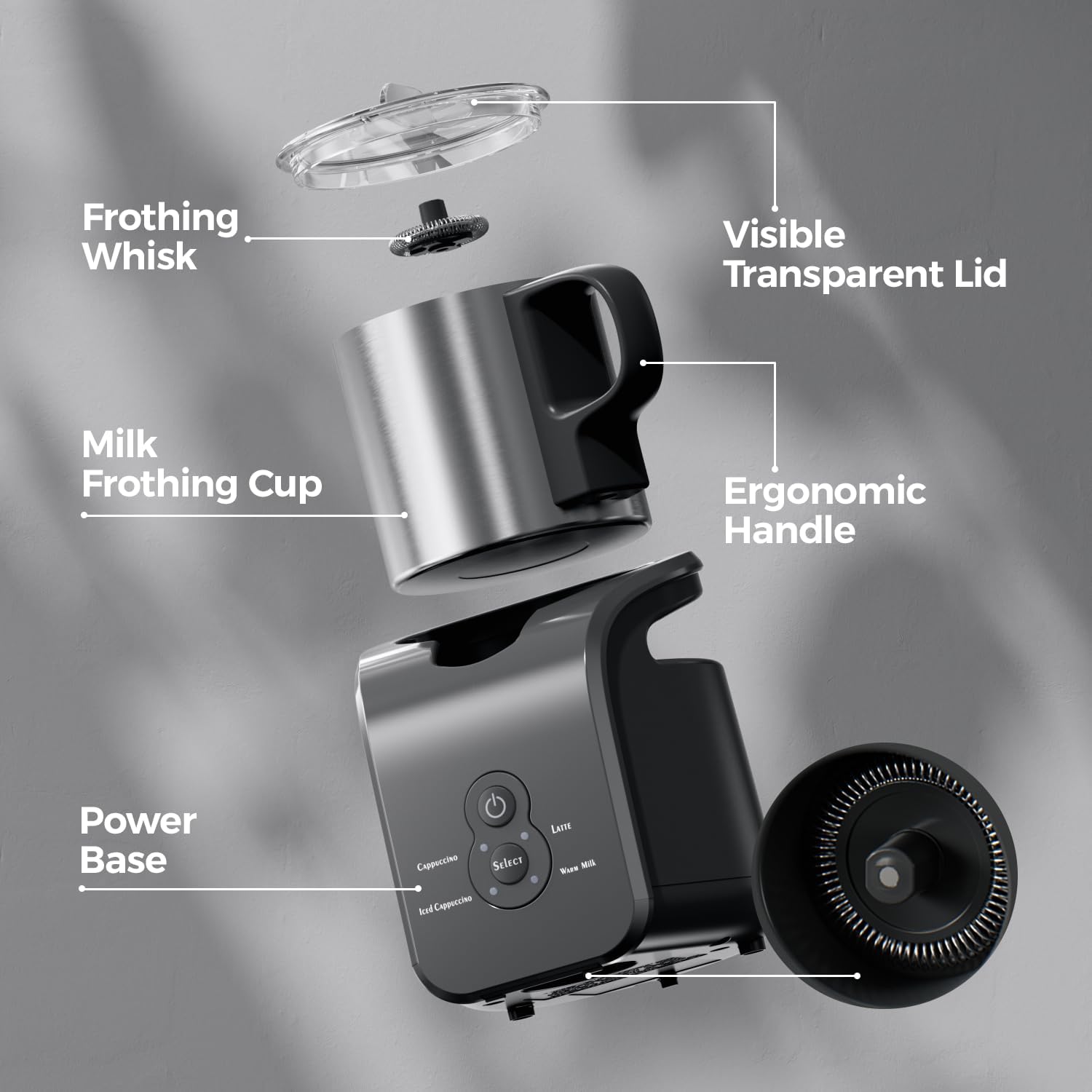 • 4-in-1 Multifunctional Frother: Create rich cappuccino, velvety latte, refreshing iced coffee, or simply warm milk with one compact device. Perfect for coffee beginners and pros alike.
